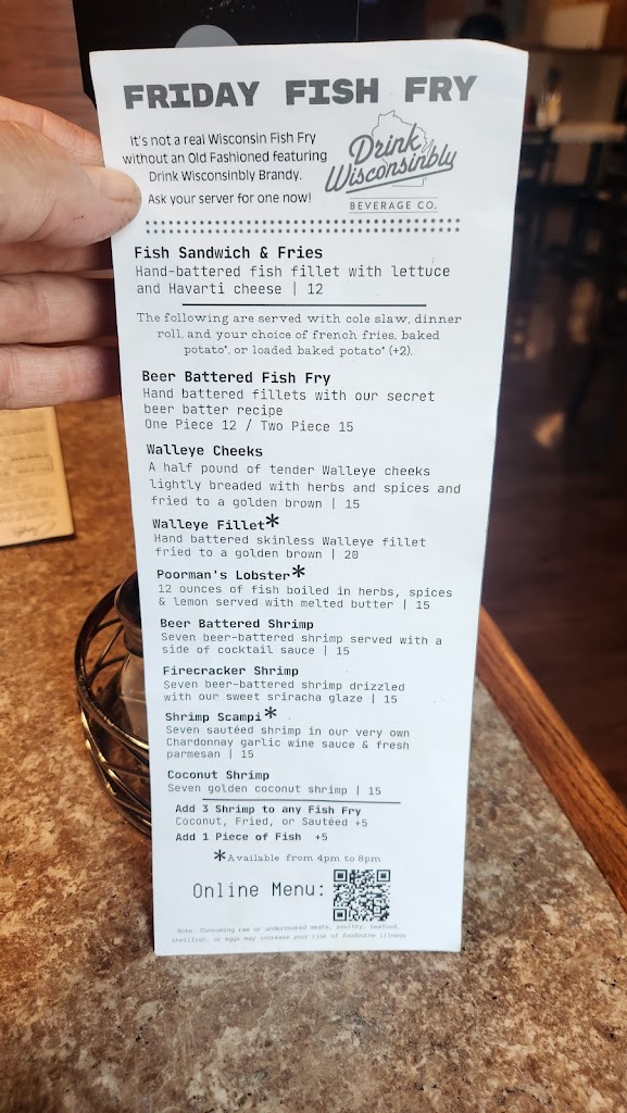 Great Friday Fish fry! Delicious food, worth the wait!! They have the BEST cheese curds! They get very busy on Friday night, get there early or expect to wait a while for your food. Not a problem if you don't mind having drinks and appetizers before hand. Highly recommend!