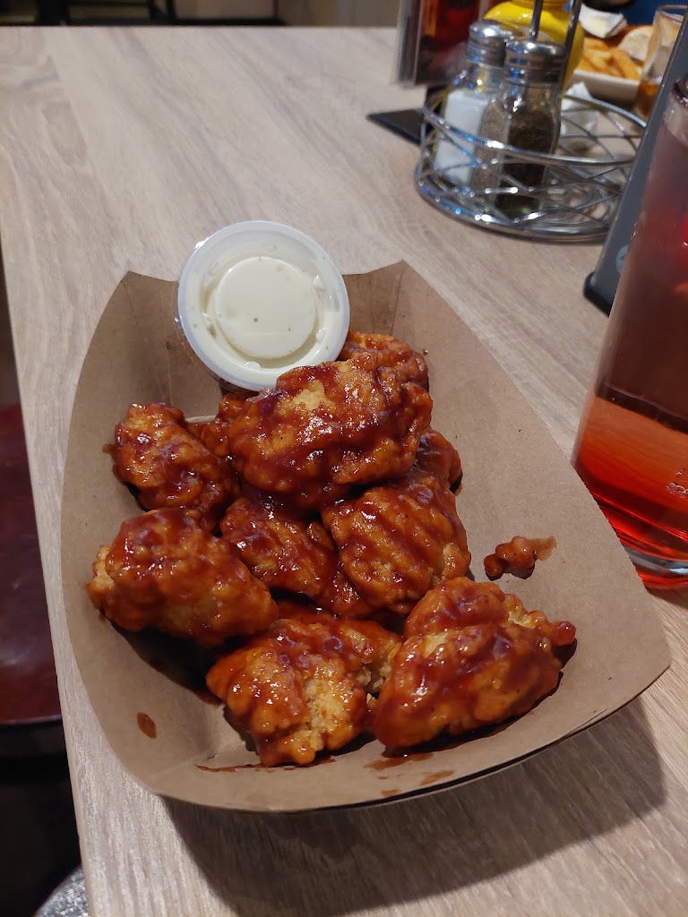 Fantastic, unassuming restaurant! My husband and I stopped in for late lunch and everything we ate (cheese curds, Caesar salad with crispy chicken, chicken sandwich) was excellent. We were a little surprised to realize the restaurant was in the bowling alley but soon learned it didn't affect the food quality at all. The manager was there at the same time and was incredibly generous and also let us try a Nashville hot chicken sandwich he was working on. Many of their menu items are made in-house, including all of the desserts. Would 100% recommend this spot!