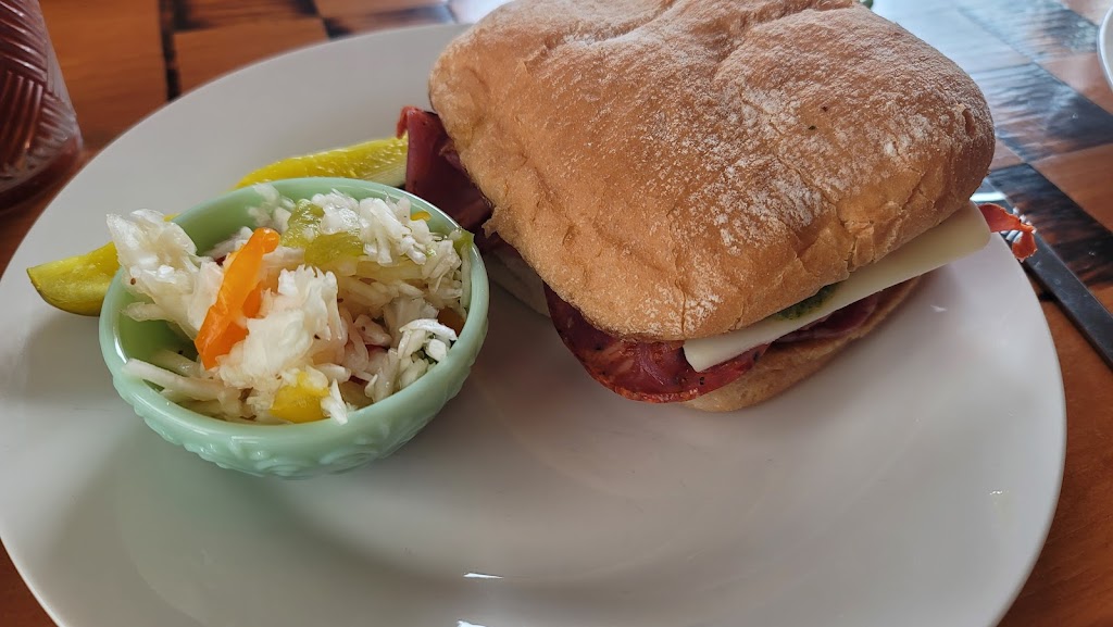 Menu includes deli style sandwiches, salads, bruschetta and charcuterie. Features a beer tap wall and a variety of wine. Casual family friendly dining complete with checkerboards and other games to play while you wait. Come by and Seize the Sandwich!