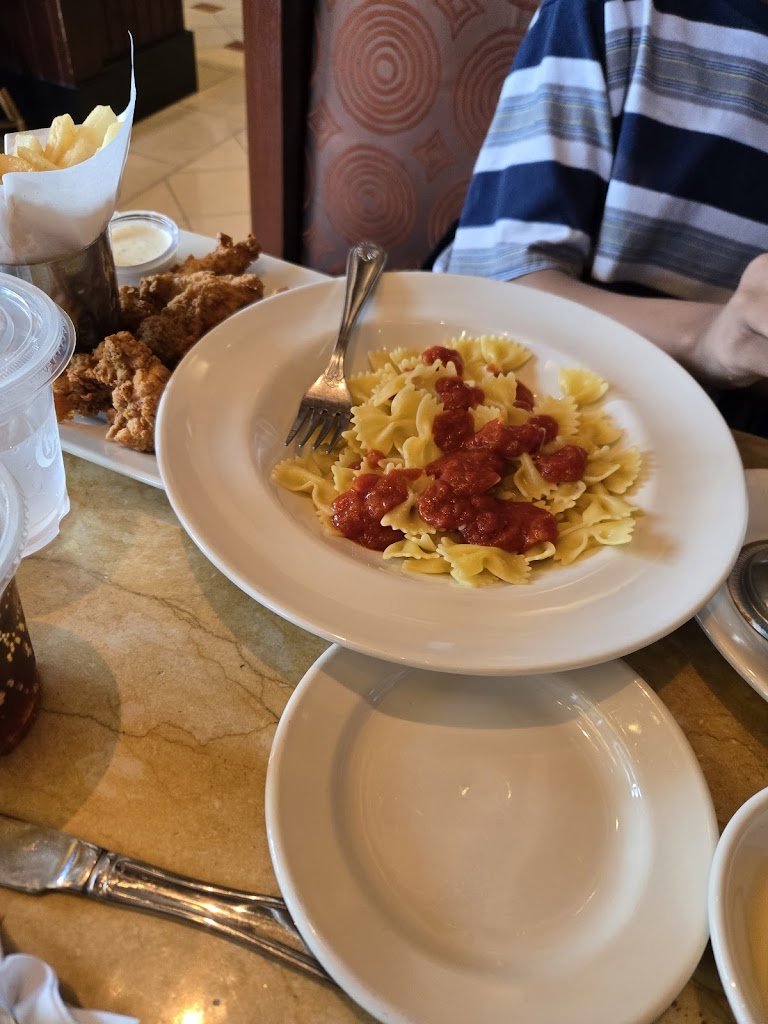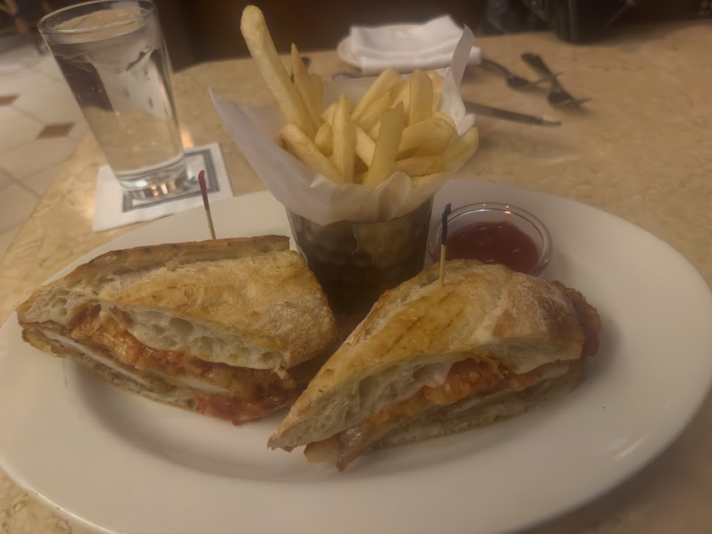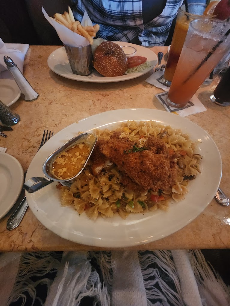 Food was subpar and plain. I got the chicken parm sandwich was just chicken red sauce and cheese tasted like it was not seasoned at all kid enjoyed the sliders and my wife said the avocado club was “ok” French fries were so damn plain it was kinda sad….waiter took so damn long that we didn’t even want cheesecake because he kept leaving for 10 minutes when we would ask for something small ..asked for cheesecake menu for him to walk away and sit there talking to fellow employees … overall not impressed however the building was beautiful to look at as probably the highlight of the meal. Overall nothing special to rave about would rather cook at home