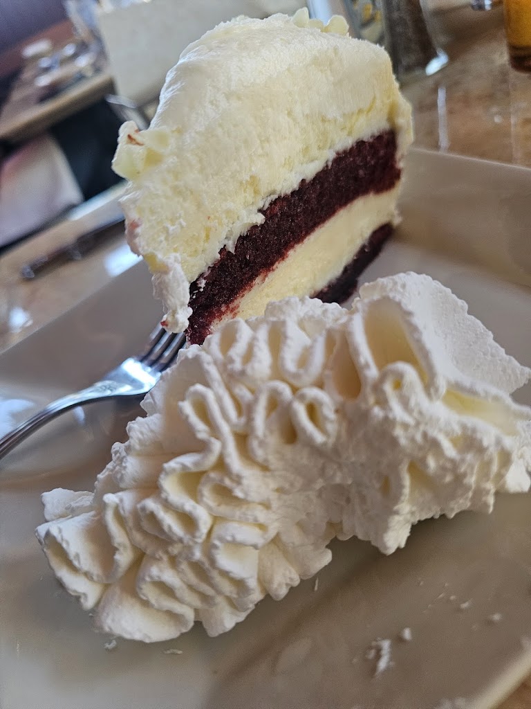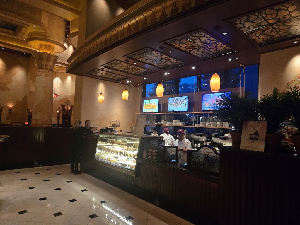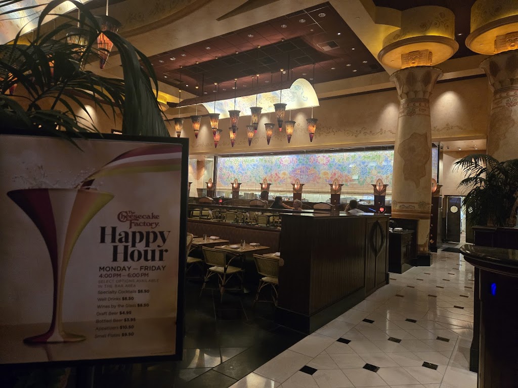 Loved, loved, loved the cheesecake factory. Best food, best waitress and loved the atmosphere. And of course cheesecake to go and a tall glass a wine.