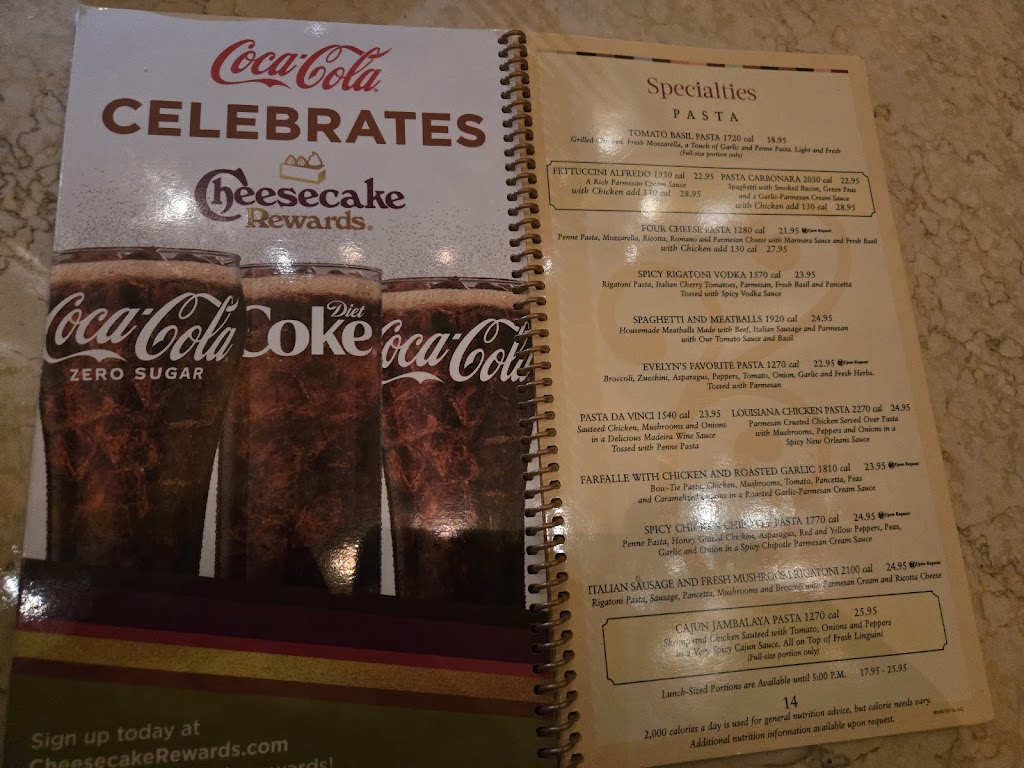 I haven't had a chance to try the food yet but I did check out the items. Looks delicious 😋. The staff was friendly and hospitable thanks people at Cheesecake factory y'all were awesome 👍.