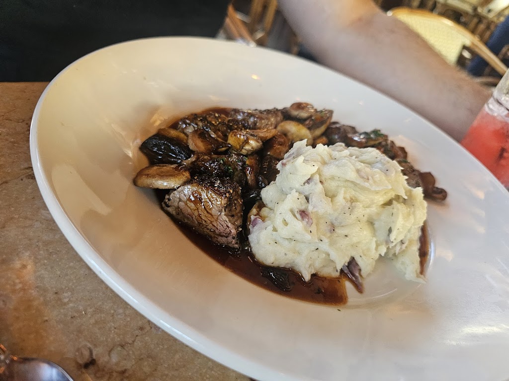 Only 3 shrimp with the Shrim &Steak Diane was disappointing. Prices are high. I don't know how much of that is inflation.