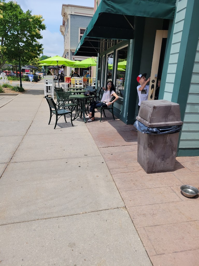 I had the "Exhausted Parent" ice cream. This is a bourbon infused espresso with bittersweet chocolate chunk ice cream. It is very good with a definite bourbon flavor. The place is clean and the sitting area is set up with every other table is closed so there is good social distancing.