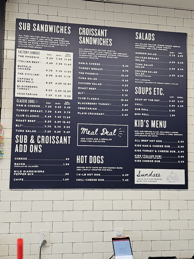 The food tastes amazing and the service is great. I was not happy about the portion/ price. My girlfriend and I ordered 1 sub each on a croissant and 1 small soda. The total was like just over $20. I was just really disappointed when I unwrapped it and it was extremely small. I mean my girlfriend who is a small eater was still hungry after eating it. I felt like it was a waste of money. For that to be worth it I wouldn’t have payed more than $11-$13.