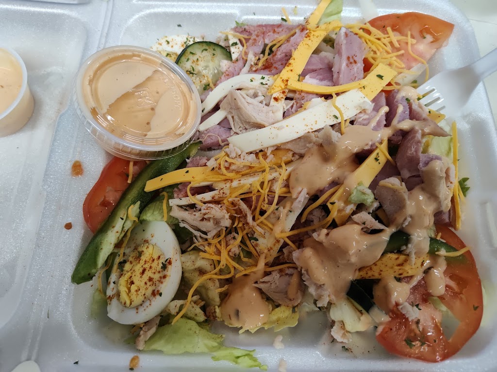 Picture is of a Chef salad ordered for pickup. Vegetables were fresh and size of salad portion was perfect.