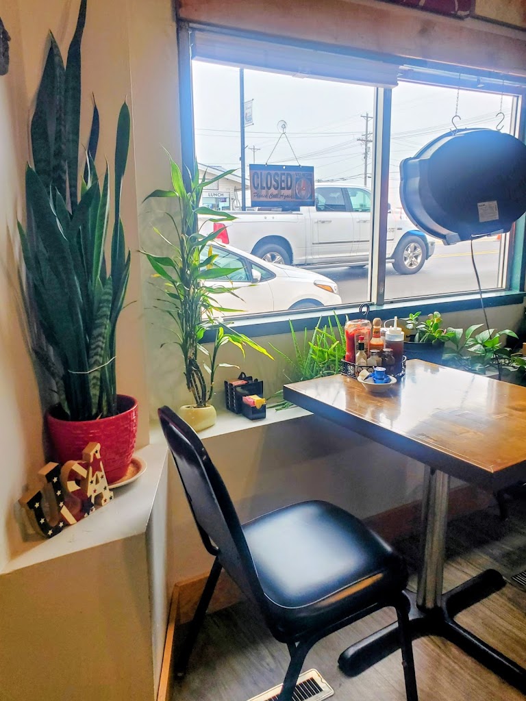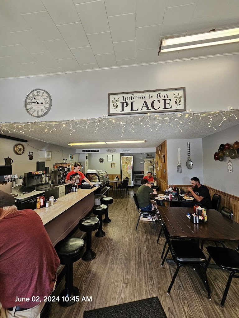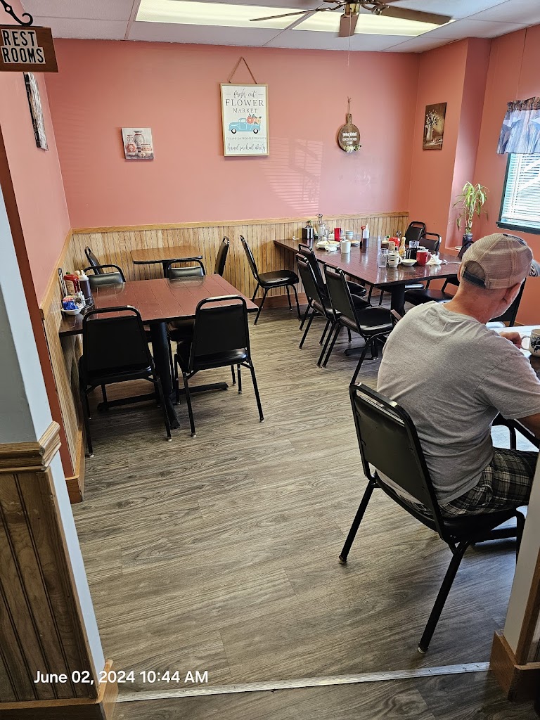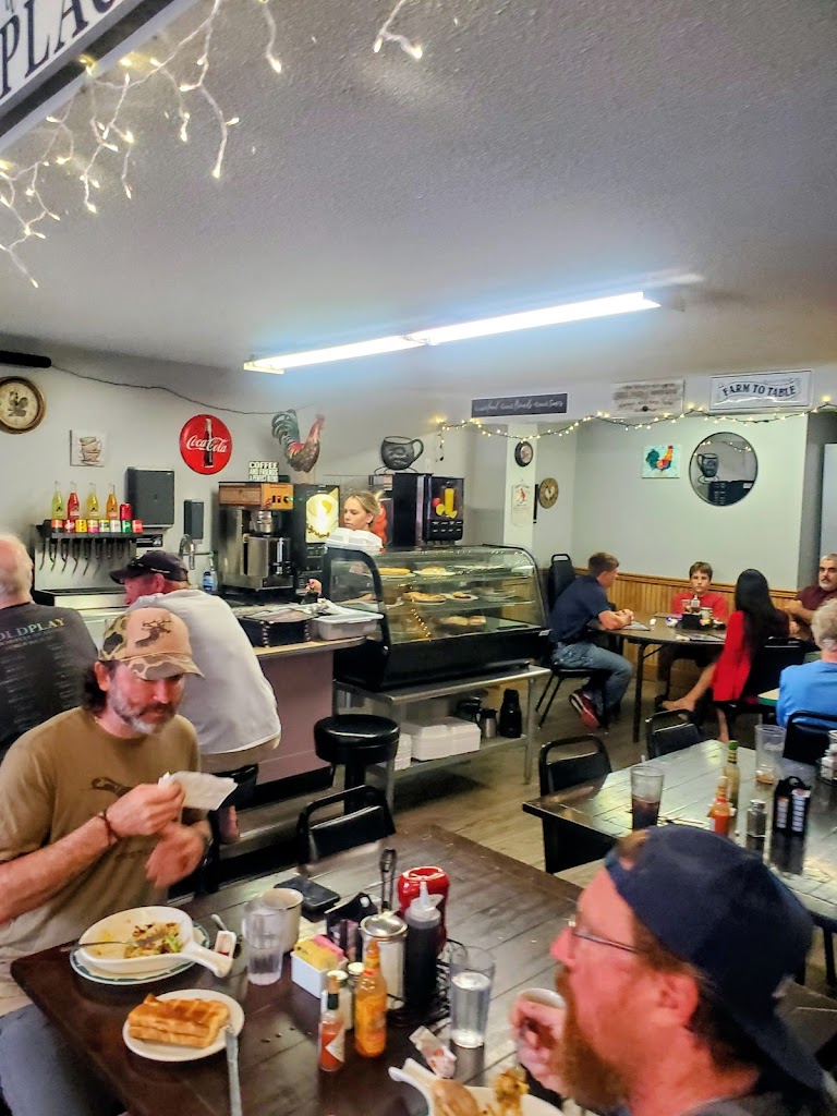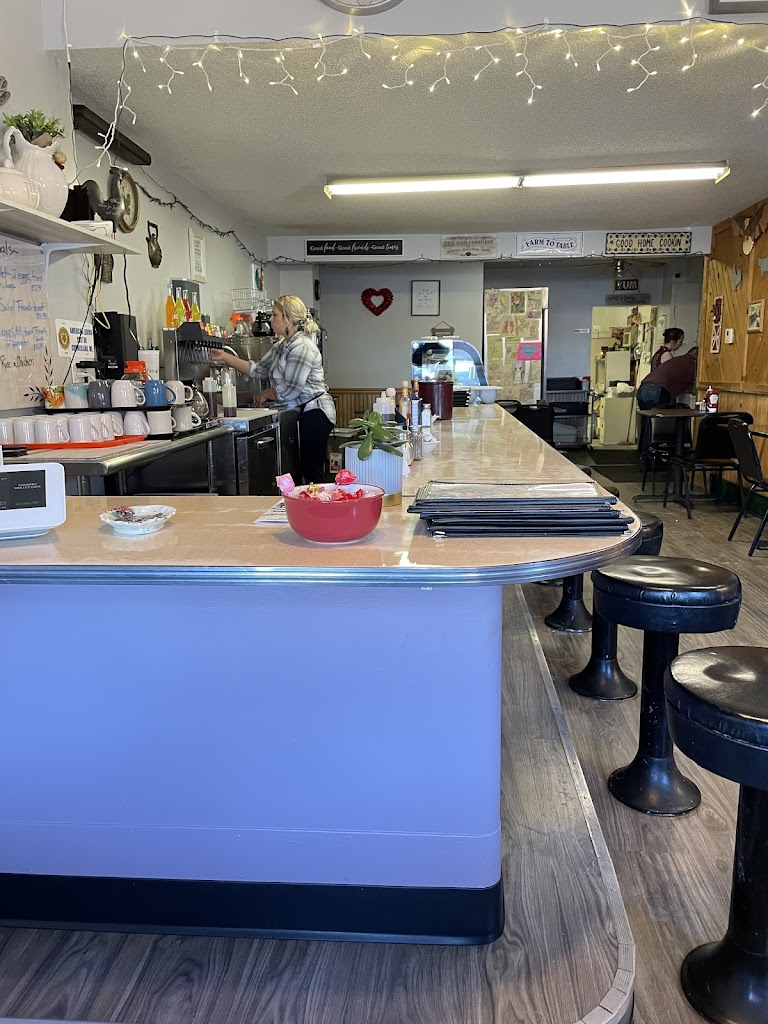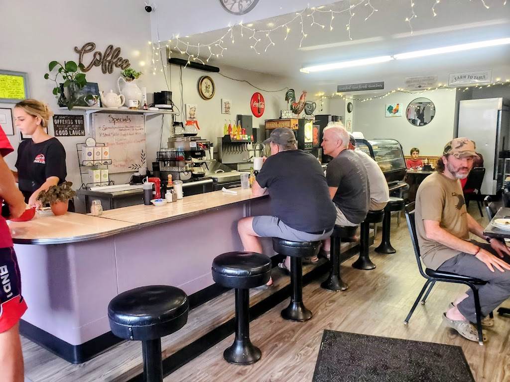 This little gem in a small town was a breath of fresh air. Walking in there is a classic stool at the bar option to sit at and chat up the waitress. A couple small rooms boast tables for 2 and 4 and it keeps things cozy. The food was good and fresh. The coffee was enjoyable. My hubby and I hit it right at noon on Sunday so we were lucky to get a table. Service was slower but good, and to be expected for having every table full. Definitely check this place out for delicious all day breakfast or a yummy burger. I got the veggie omelet and my husband got the cowboy burger.