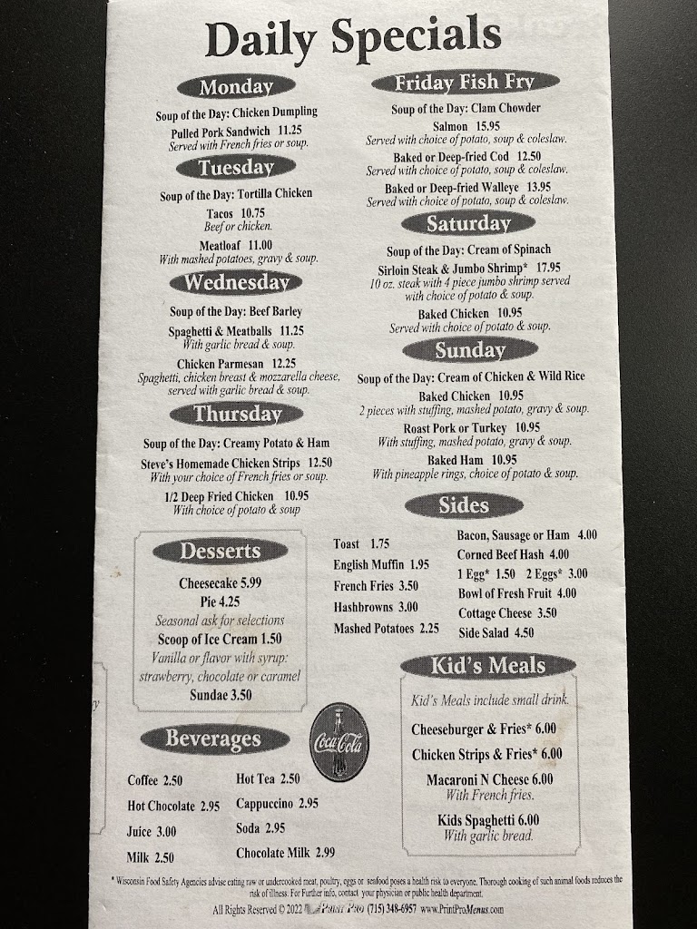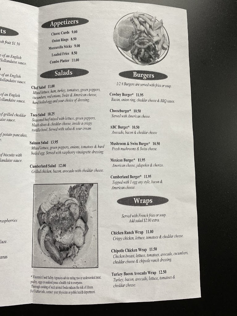 It is a wonderful little cafe, good homemade feeling food, delightful owners, clean and cozy. A true blue northern Wisconsin gem.
