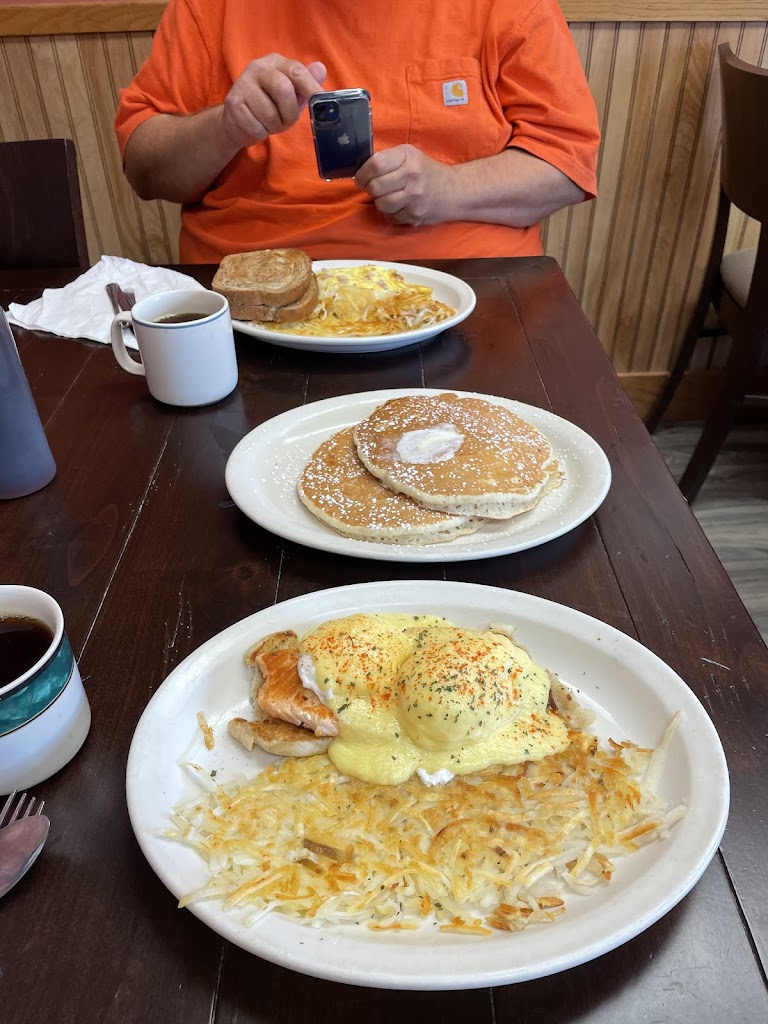 Don’t take a chance on the eggs Benedict. My husband and son had very good food. One of the poached eggs on my benedict was under cooked and watery. I tried to get the attention of our server but could not and she never checked on us. When the bill finally came, I asked for a partial credit for my meal since I wouldn’t eat an egg this raw. They refused any sort of adjustment for the uneaten portion of my breakfast, saying they “don’t give out free food.” I won’t go back.