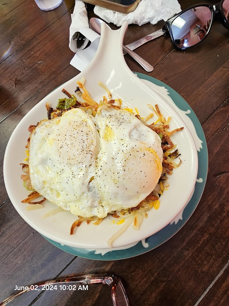 Classic breakfast food! We had the CSC and the Mexican Skillet and both were great. Our server did an awesome job checking in on us even though she was training as well. We would definitely come back! It is also located right at the start of the downtown area, and it was perfect to take a walk around after we ate.