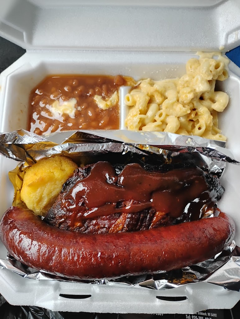 Had a bad meal a couple months back. My wife said give them another chance. Very dry ribs. Burnt cornbread.Sausage is store bought ( probably made in New London). BBQ beans are basic out of the can. Collard greens were good.