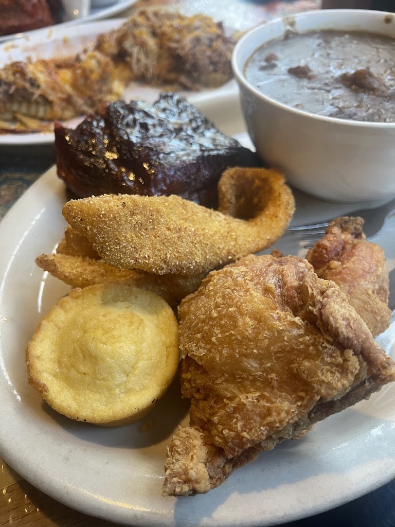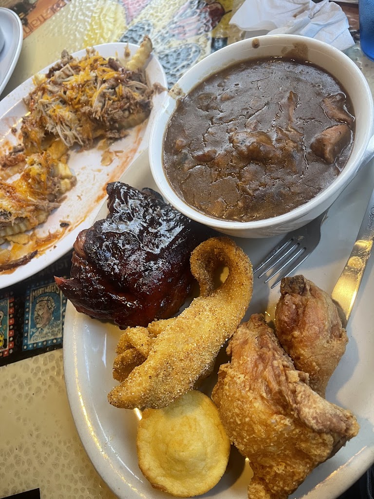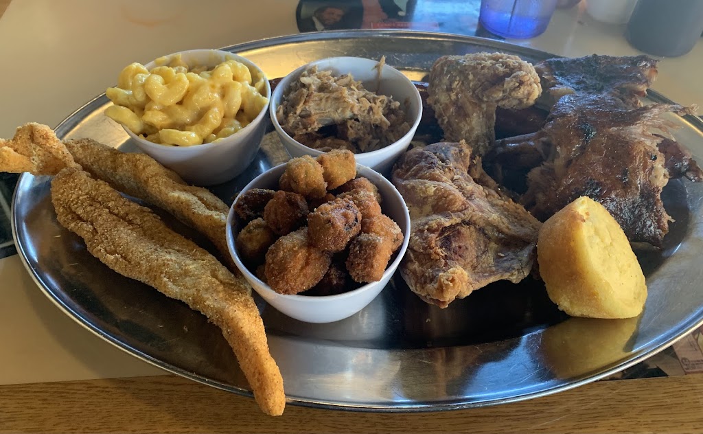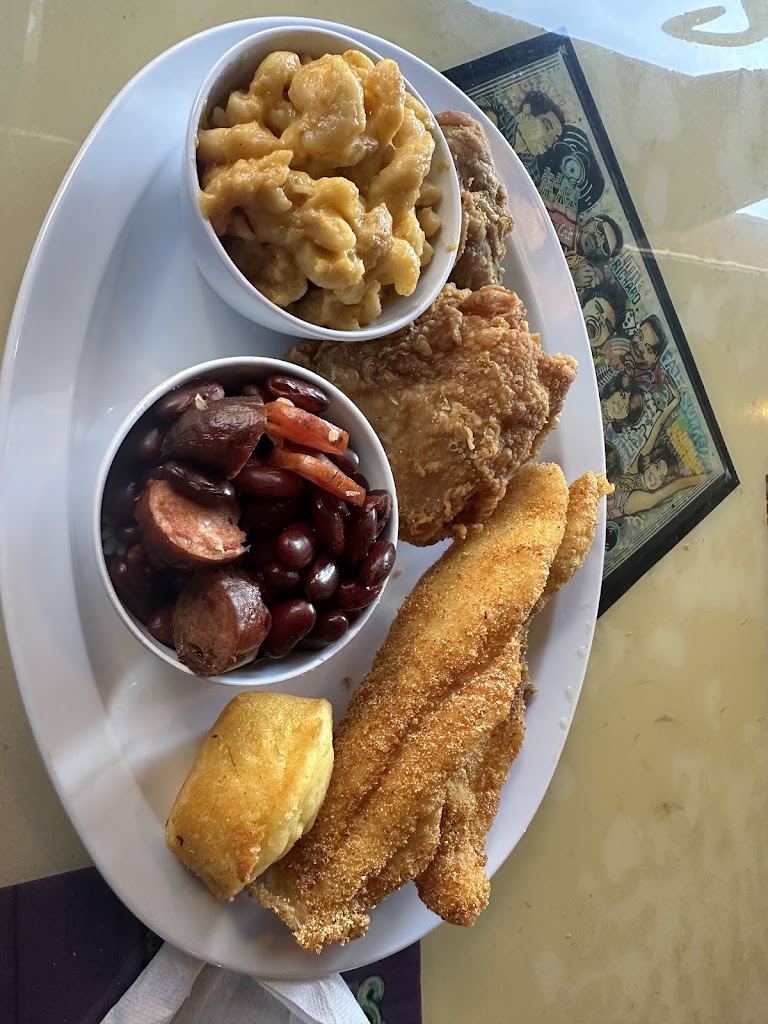 Very good experience the staff was really nice the food was excellent. That catfish and sausage was my wife and kids favorite. I liked the catfish and pull pork the most myself. The fried chicken was juicy too all around great food and great price. We ordered the kings platter can feed up to 4 people