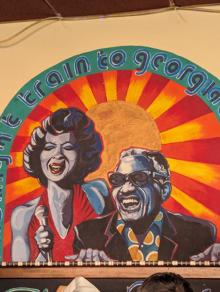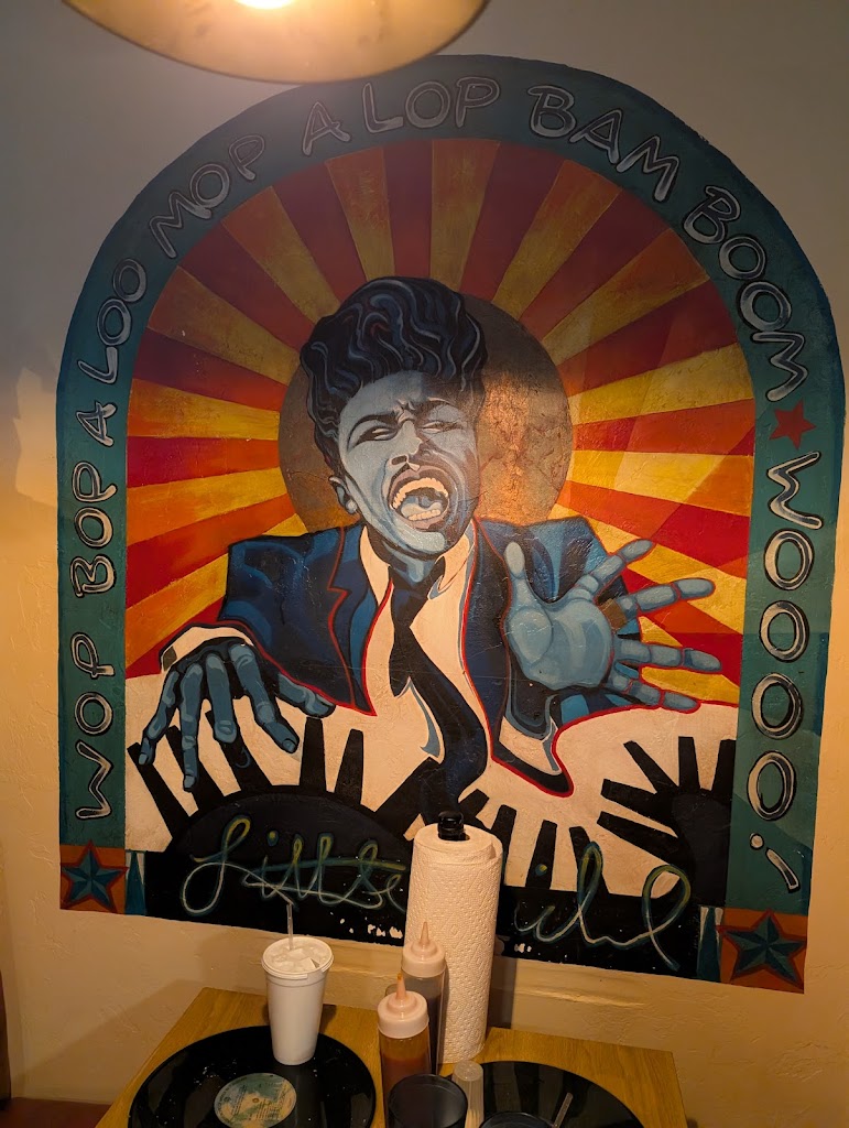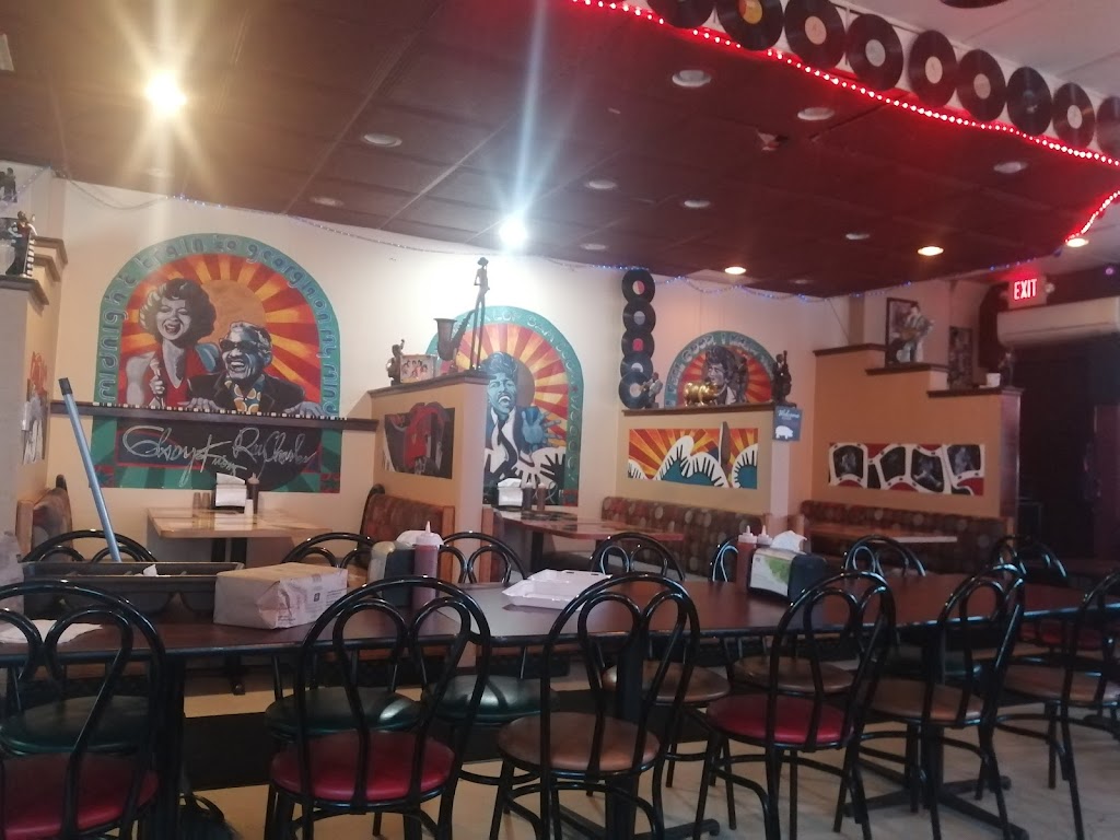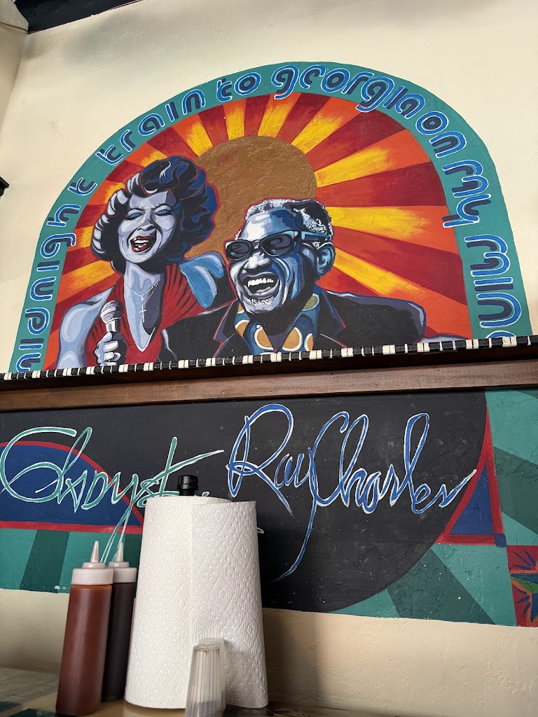 Saw this on Google maps while in town visiting and thought I’d give it a try. The decorations, murals , and music were all of black musicians during the blues era. It was amazing to look at and there were many conversation pieces to talk about while waiting for our food.