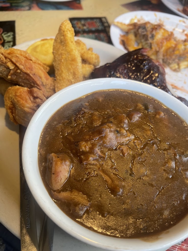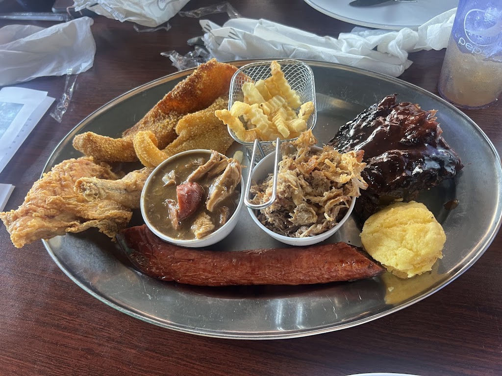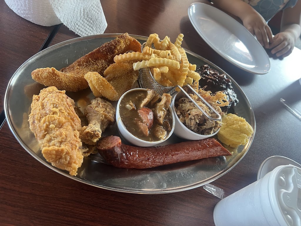 I recently ordered the King Platter for myself and another person. The fried okra, fish and fried chicken were pretty good but not stellar. The pork, ribs, and smoked sausage were the driest meat i have ever put in my mouth-hole. It was so chewy and dry. it was the worst meat i think i've ever had and I have eaten at some pretty shady dives over the years. the Gumbo was decent. I think next time i'll order from wilder's instead.