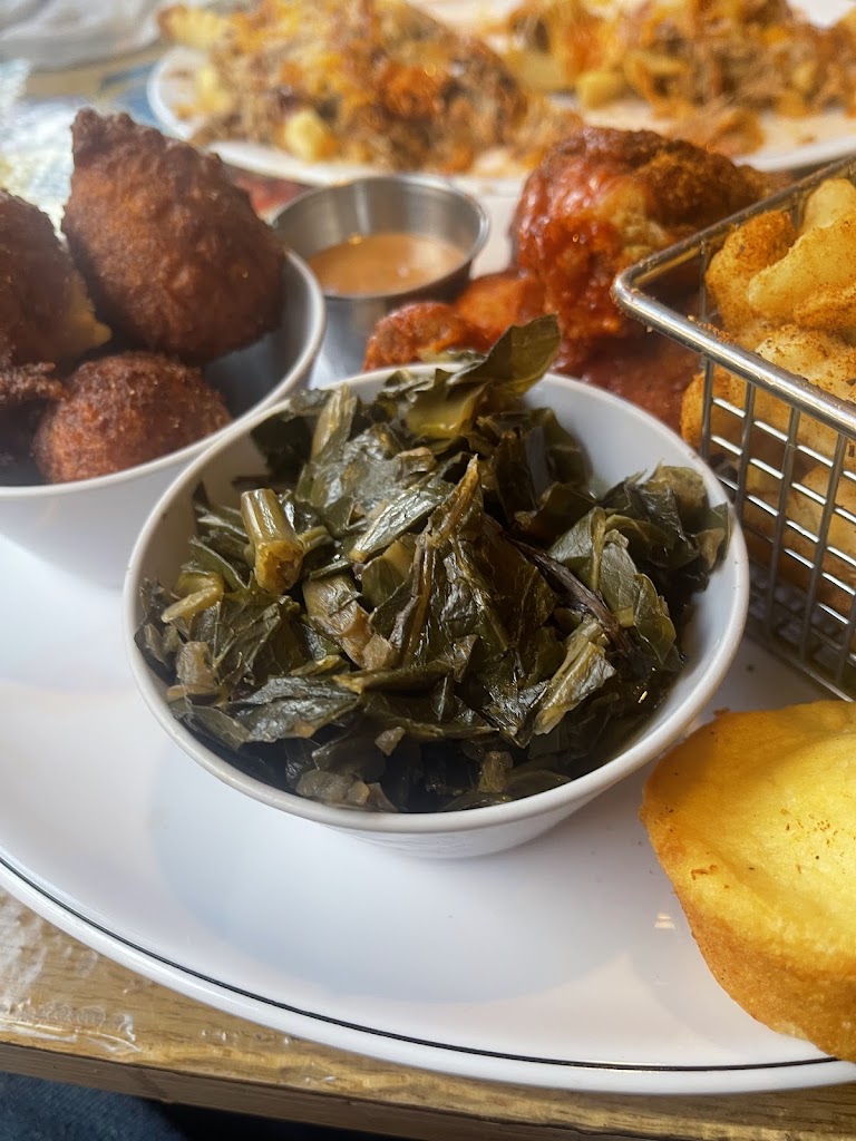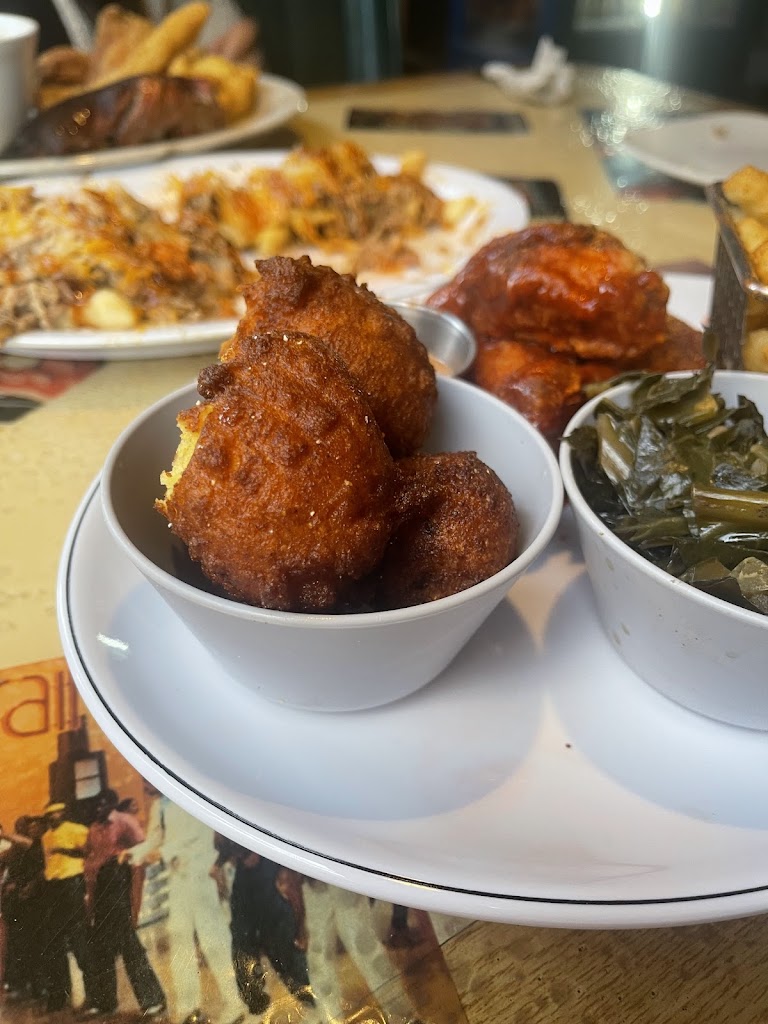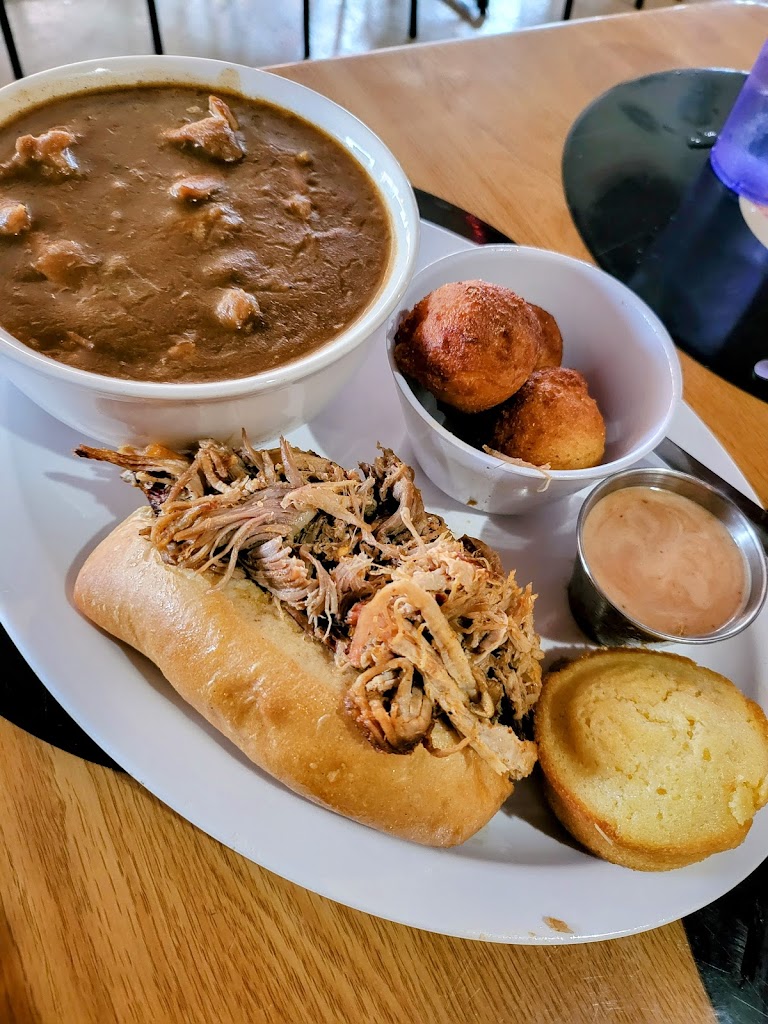 Top notch soul food in a cool atmosphere. I had the Big Azz Gumbo with smoked pulled pork, corn bread and Hush Puppies. Loved it all.