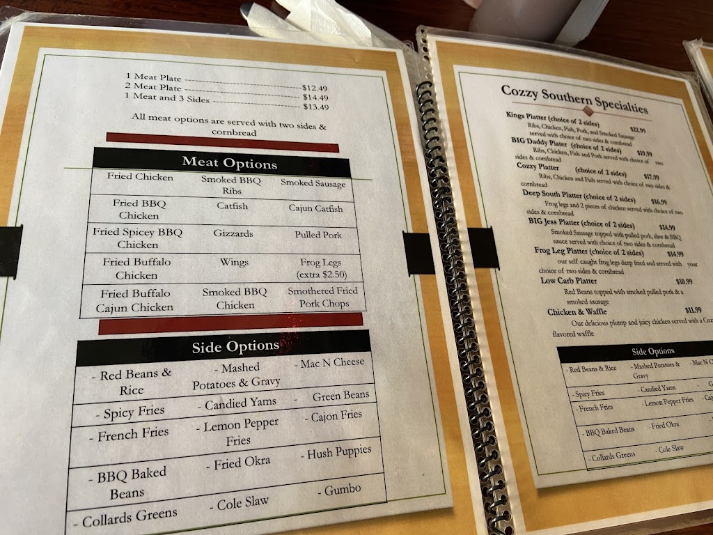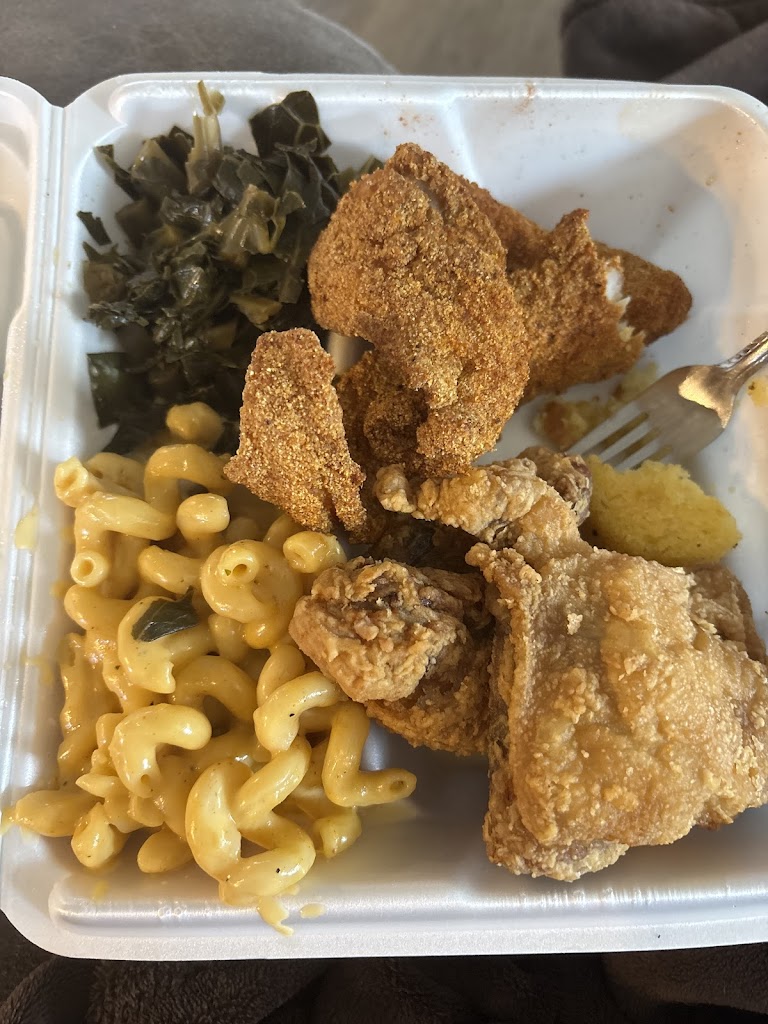 I Door Dashed Cozzy Corner because I was craving comfort food. I’m from Missouri and just hadn’t found anywhere in the area that does comfort food justice, until now. I had the two meat plate. The Cajun catfish was crispy and full of flavor, although a bit too salty. The fried chicken was delicious with a crispy skin. The greens were amazing, but would’ve been better with some pepper vinegar sauce. The macaroni and cheese was to die for! Lastly, the cornbread muffin was moist and tasty. I highly recommend Cozzy Corner! Yum!