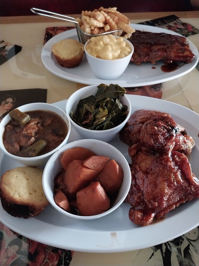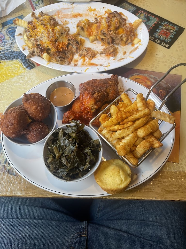 Ordered our meal and when I took my first bite of my ribs mind you RIBS which should be hot.. my full rack of ribs were cold my Cajon fries were cold and even my corn bread needed to be put back in the oven it was a lil sticky in the middle 🙃 the only thing that was warm and didn't need to get blown on was the collard greens not sure what happened today but seems they have a new cook in town and I'm not happy with the food I ate my wife sadly watch me eat. We confronted the waitress and she took one of the meals off but still if the plate isn't hot then the food prolly isn't either this is ridiculous.