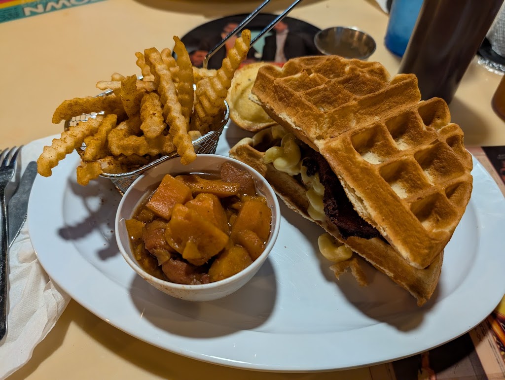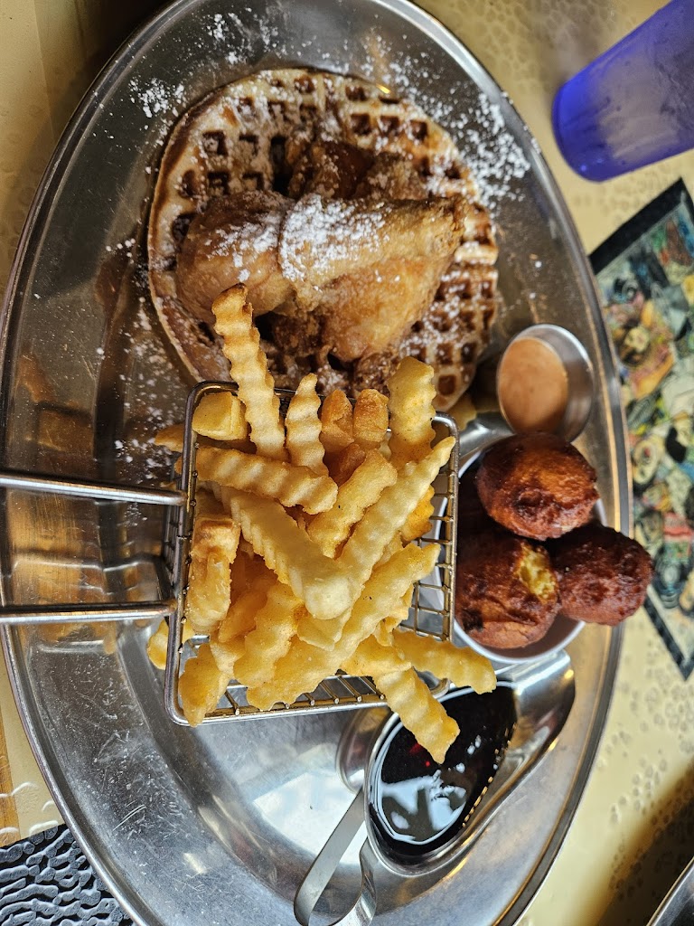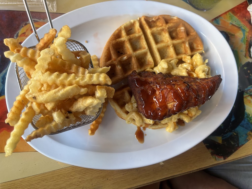 I had the chicken and waffle. The waffle was a little too thick for me otherwise everything was good.
