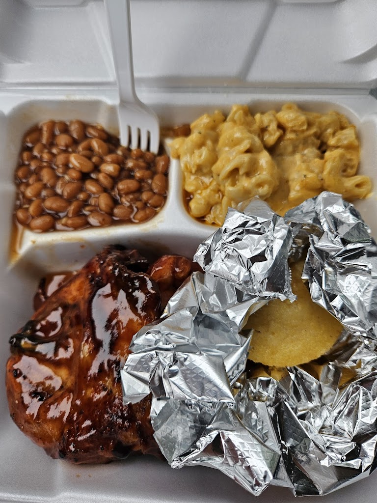 Ok so, Ribs and chicken were moist and seasoned. Very good. Sweet potato pie... 👍 Service was nice.