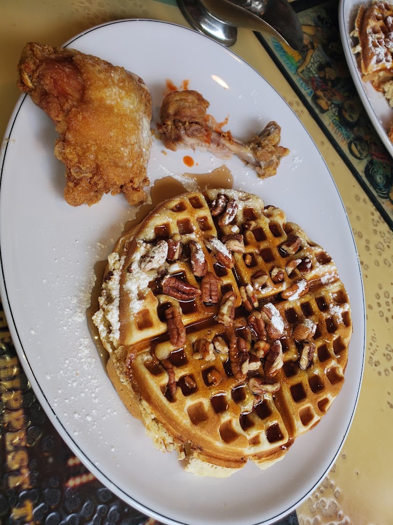 I was told the pecan chicken and waffles were really good though! Overall we’d come back to try what else is on the menu and to hear some good music .