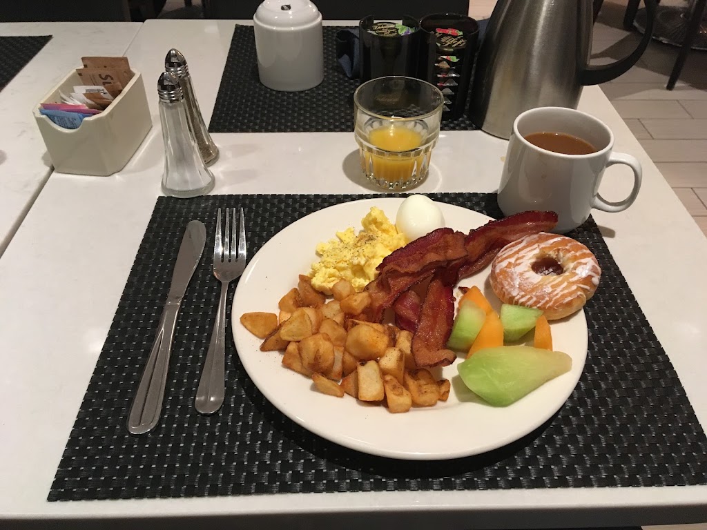 Ordered a yogurt parfait and felt it was a bit lacking, a bowl of yogurt with maybe two or three chopped strawberries, no granola, which I was disappointed by. Price is expensive, as is expected from a hotel restaurant so I wasn't surprised. They initially tried to charge me $12 for this parfait, when it was listed as $7, but when I brought this up it was fixed, so no complaints there. The server, I believe her name was Eyeleta, was kind and accommodating. Atmosphere was just fine.