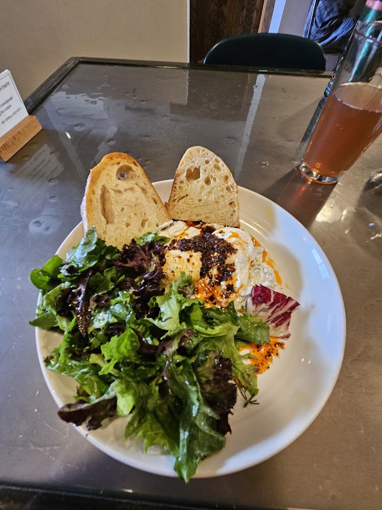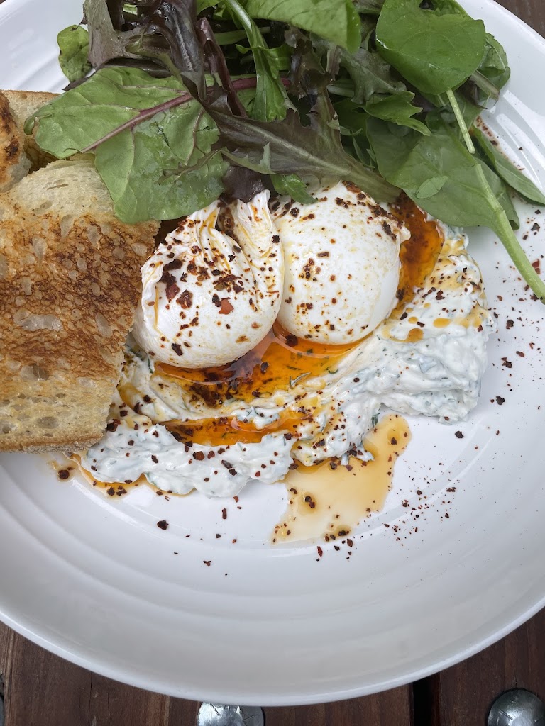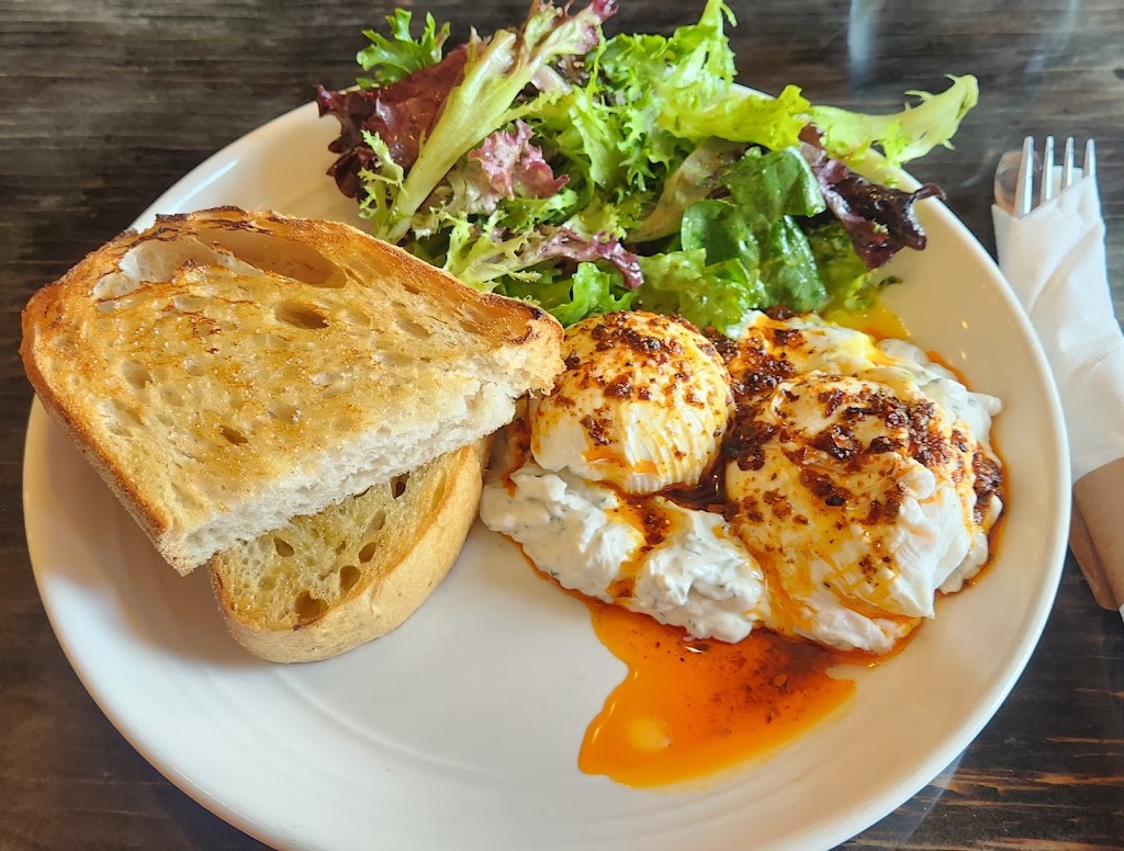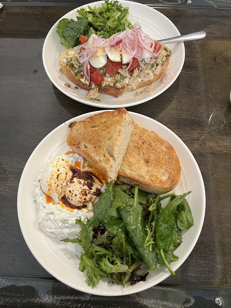 We went for breakfast on a Friday morning. The pastries in the case in the front looked amazing, but I held out for the kimchi egg on sourdough. It came with two pieces of perfectly cooked thick sliced bacon & it was absolutely delicious. Three of our party had a ham & potato hash, which they all said was excellent. The fifth person had the Turkish eggs on toast that he loved. They all came with a small side salad that had a perfect vinaigrette. The coffee was hot & strong, and the service was terrific. I can’t recommend this place highly enough!