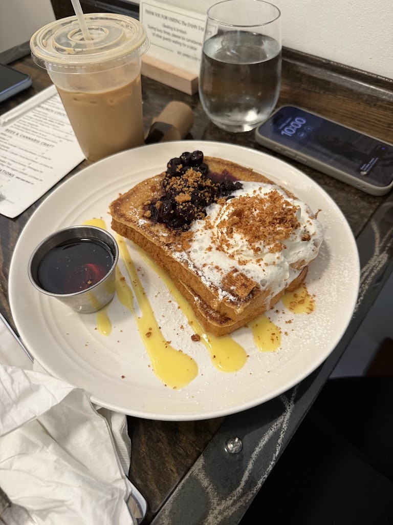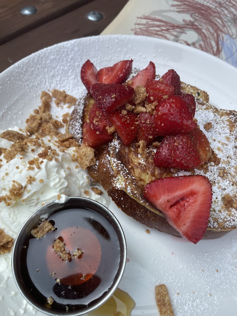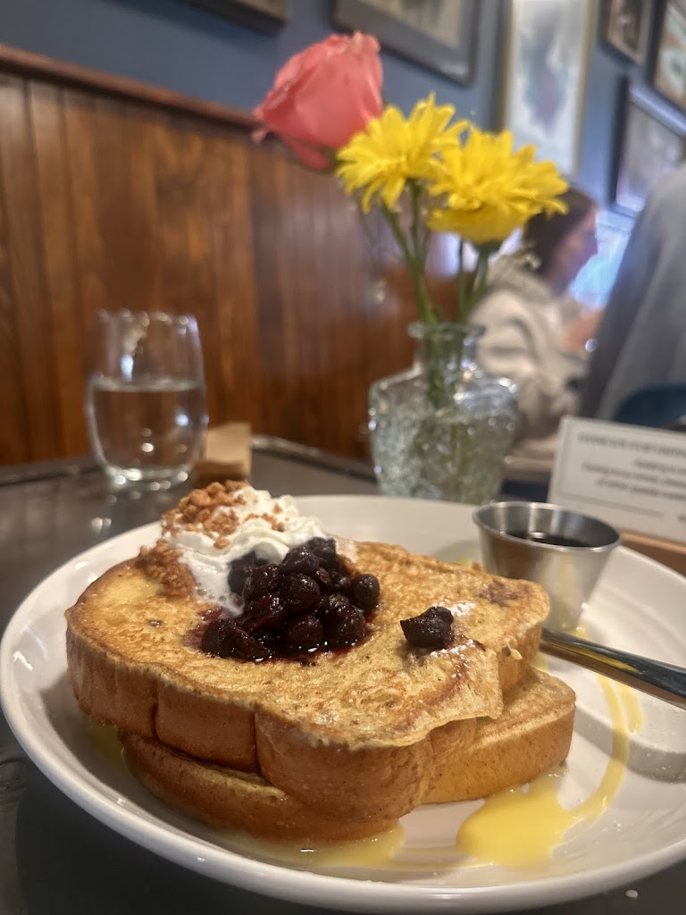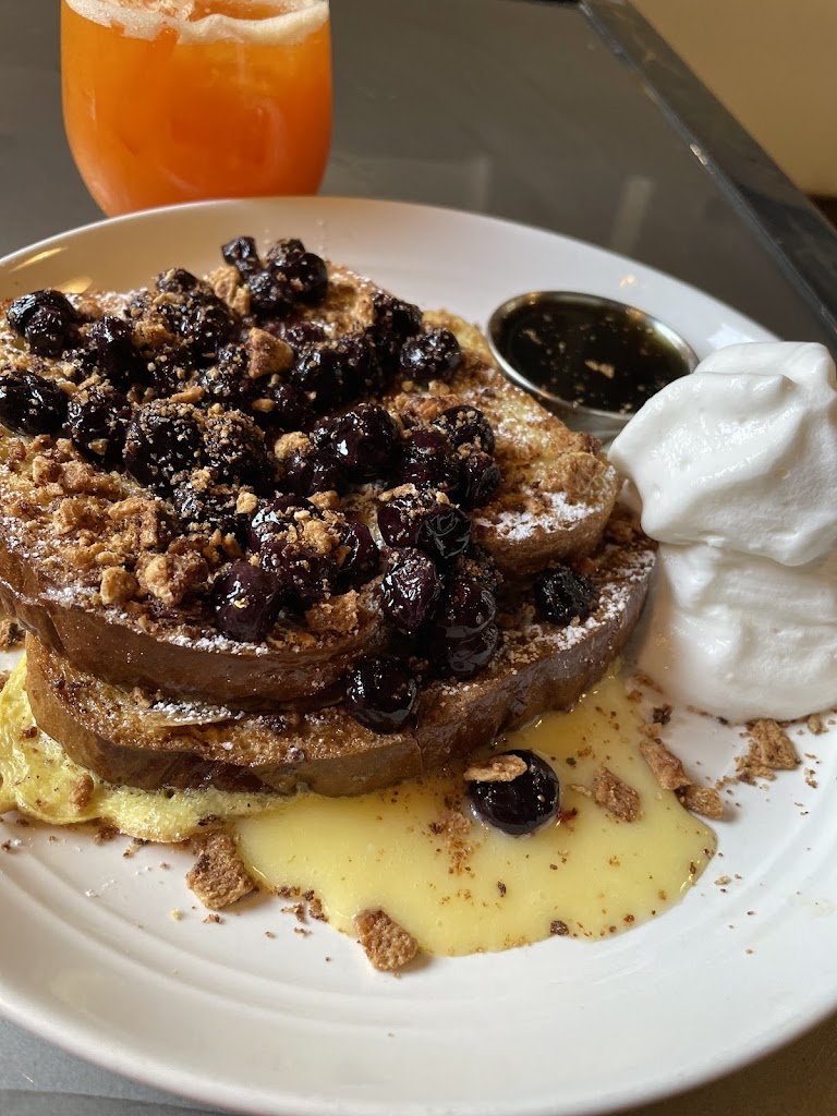Finally, we had the French Toast with blueberry compote, lemon curd, honeyed whipped cream, cinnamon crunch. I guess we figured we needed a little bit of sweet with all of our savory!