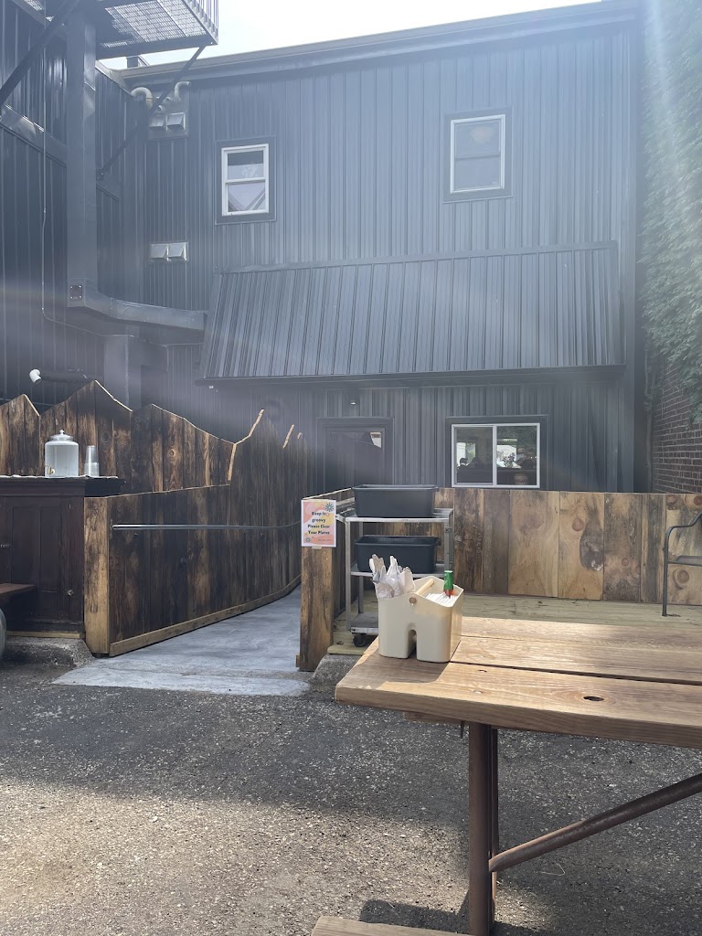 Counter service and seat yourself setup, with coffee offerings, pastries, and 5-6 breakfast options. I personally love the back patio with a good amount of picnic tables, and the brick building with ivy is beautiful and provide that classic historic vibe of La Crosse. Just need a proper busing station and garbage, the paper bag garbage outside was odd. Def could see some string lights and live music at night being really cool!