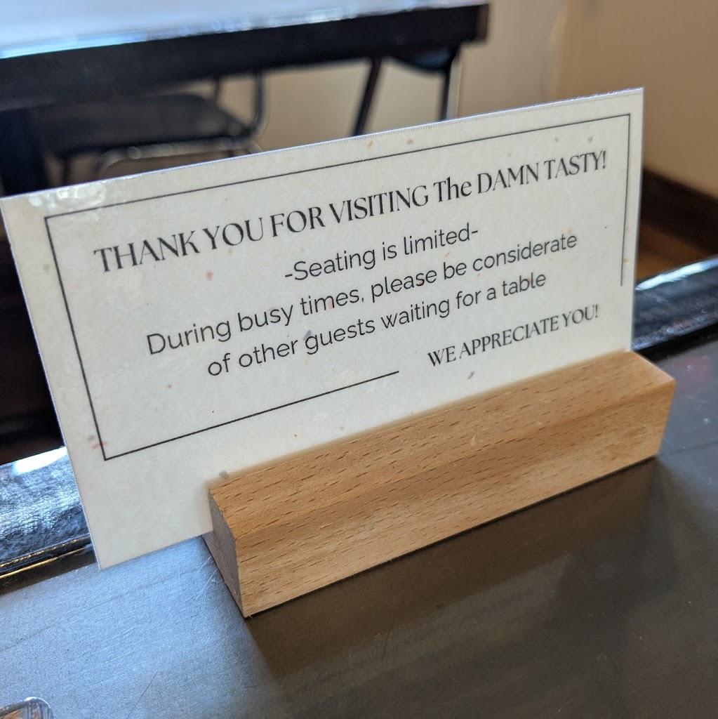 The Damn Tasty definitely lived up to its name when we visited around noon on a Sunday. Everything arrived hot and packed with flavor. While the place was busy and not big on elbow room, the vibe was still somehow relaxed. Great people and fresh food on the North side. Represent!
