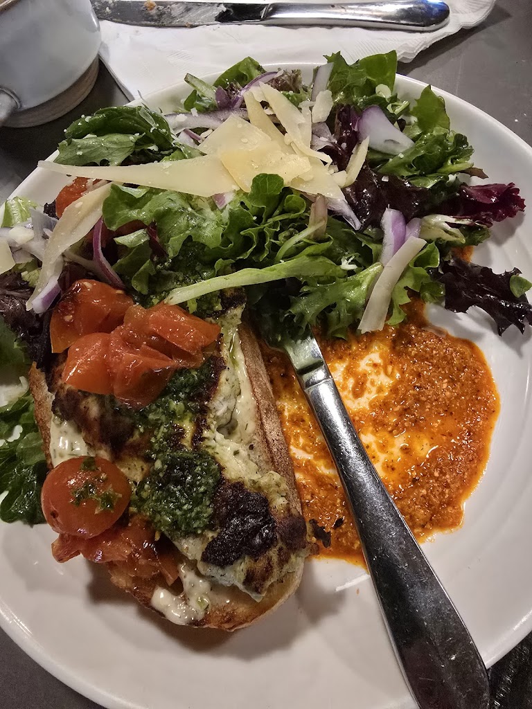 The chicken toast is delicious, served on homemade sourdough bread. A wonderful combination of flavors served with soup and salad or extra salad. The service was efficient and friendly. The ambiance is serene and welcoming. A highlight of my trip to La Crosse.