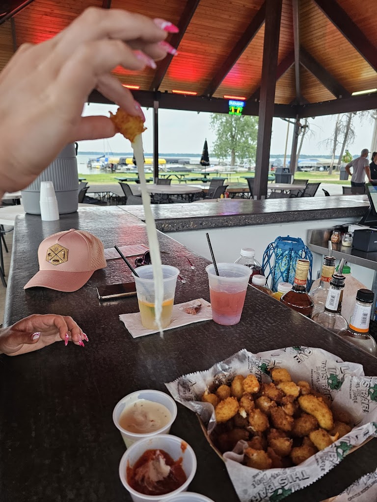 Went here after that storm with the tornados chased us off the lake. It's a fun little lake bar. There's a laid back atmosphere and decent bar food. I'd go back there anytime.