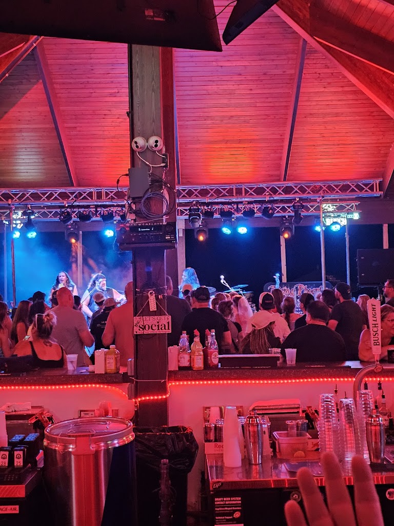 Excellent outdoor area that is covered. Outdoor area has full services available. Great atmosphere for live music!
