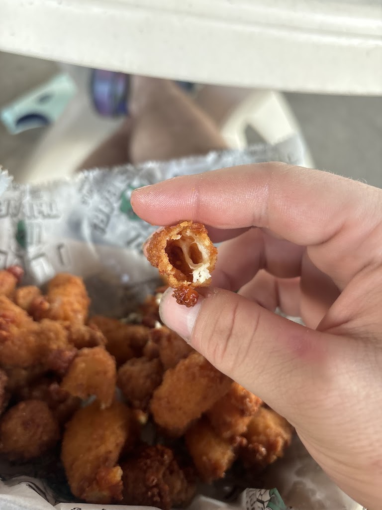 Got cheese curds almost $15 and Burnt them almost no cheese inside if your gonna charge that much money atleast make them with quality overpriced and garage cheese curds not happy at all