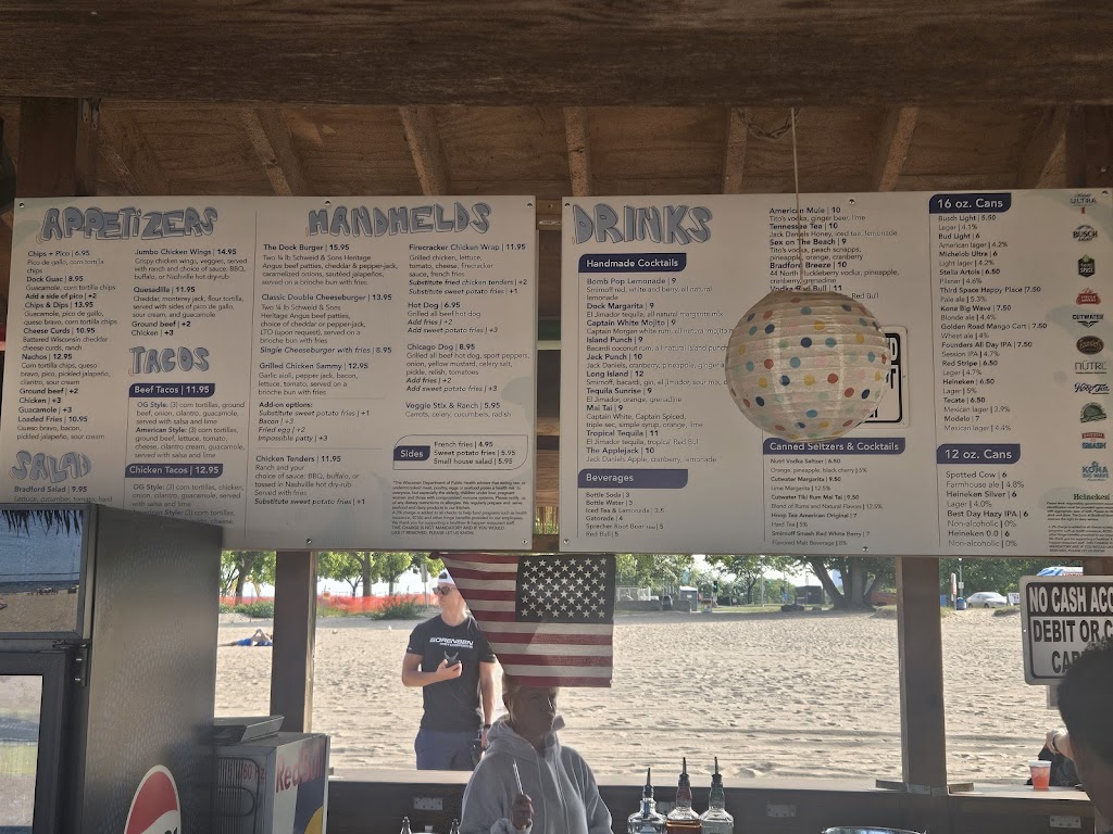 Vibe is chill, drinks are reasonable and the staff is nice. Great for a beach bar.