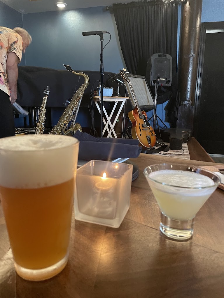 We were on a little getaway trip and saw this place close by. Not sure how busy jazz night would be, we made a reservation. Being 7 months pregnant, I requested a low seat and they did not disappoint with getting us in padded chairs right in front of the music. They only had one person working the bar and floor, so service wasnβt super speedy, but it allowed us to just enjoy the music and evening. The food overall was really tasty and I appreciated they locally source. We walked out relaxed having enjoyed some nice music and delicious food.