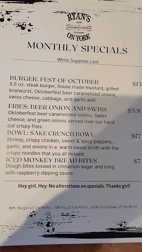 Great place for a burger, comfort food or drink. Always good, always good service.