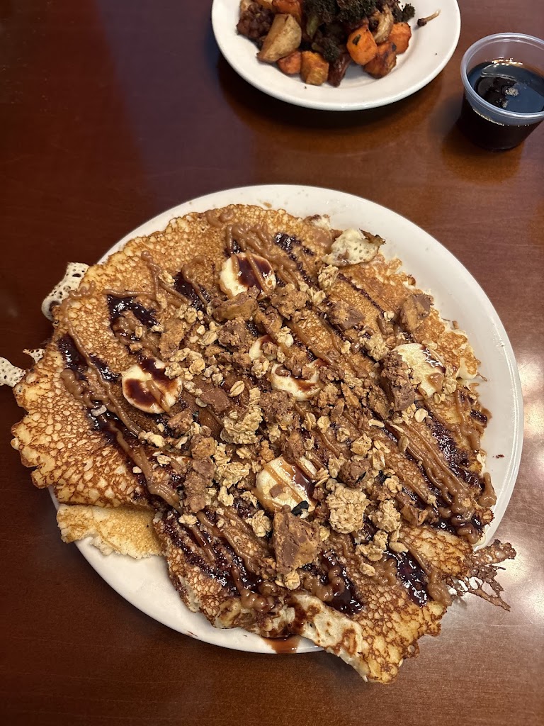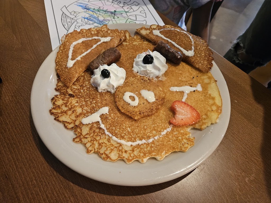 Very pleased with this new eatery here in Allenton! I loved the food that I got-I ordered the chocolate peanut butter crunch buttermilk pancakes and was blown away by how good it was (not to mention the pancakes were big!!! A very welcome surprise!!!) I also got a turtle iced latte with oat milk that was delicious. I was surprised to see there was more than one vegetarian option which was also a welcome surprise (especially considering how hard it is to find even one vegetarian option at most other restaurants in the area). Very reasonably priced as well. Service was excellent-staff was kind and attentive, making sure to ask if we needed anything additional or refills which I always appreciate. I also liked the interior design-lots of cool sort of 80s nostalgic items like comic book, old movie and band posters, things like. Definitely worth the stop for breakfast!