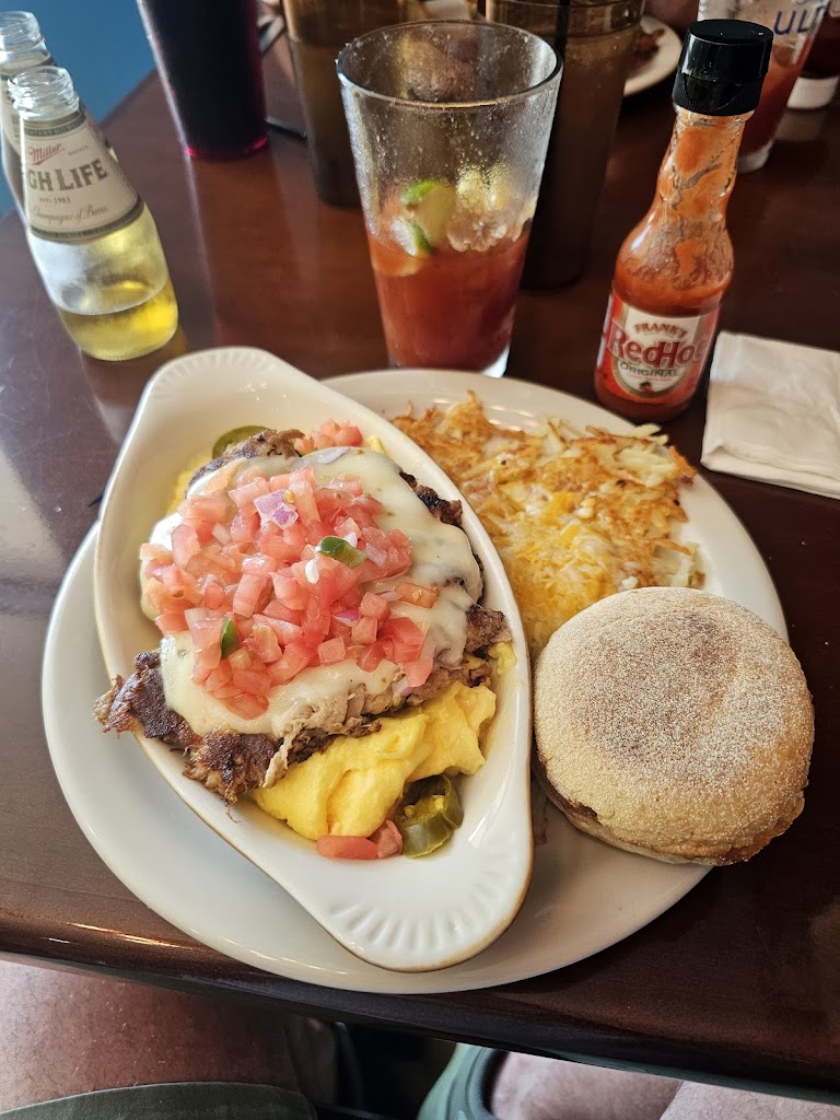 Great breakfast place and the staff, the food, and atmosphere were awesome! My Jalapeño bacon blood mary was favorable with a hint of spice. I ordered the Spanish scrambled eggs and throw some chilli lime hot sauce which paired well with it. Would go back again!