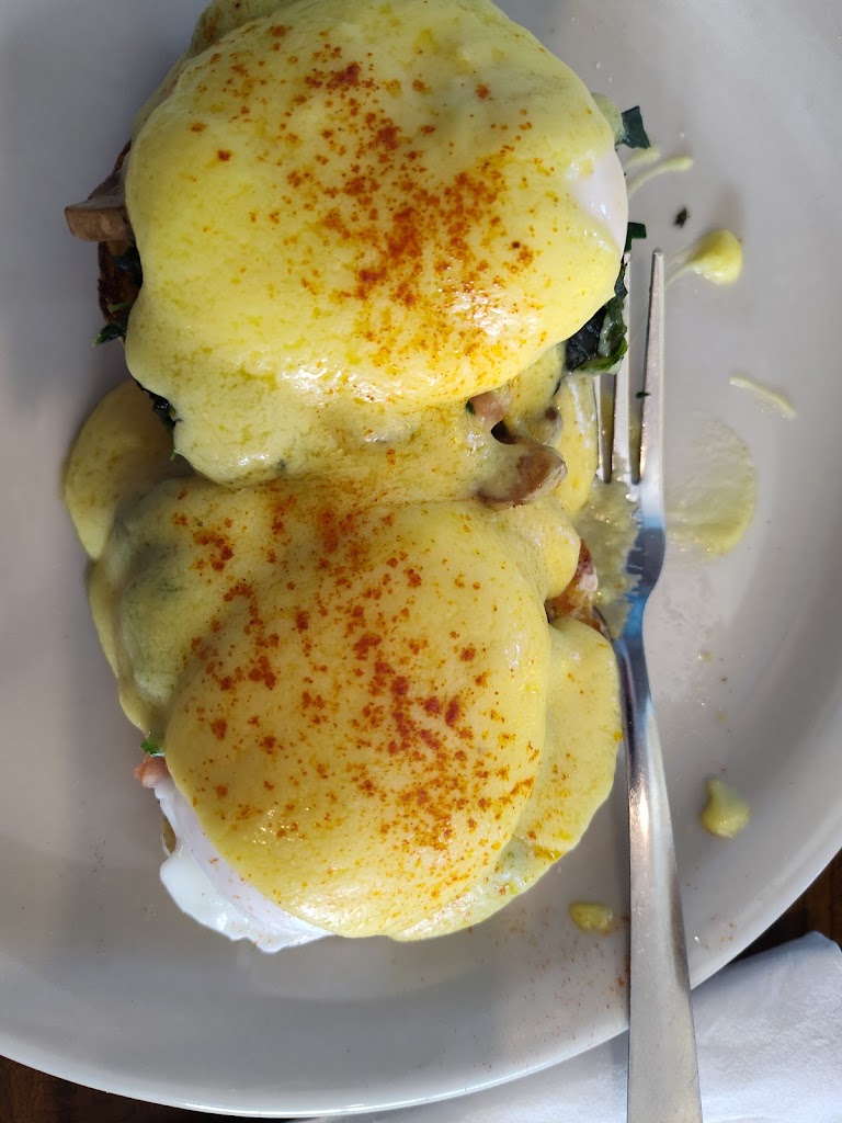 The service is very friendly and knowledgeable. Had the eggs Benedict. The ham was thick and very tender. Eggs were done to perfection 👌