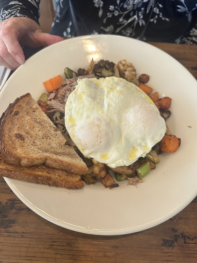 The root veggie hash was next level! crispy and golden on the outside, soft inside, and full of earthy, roasted flavor with a mix of sweet potatoes, broccoli, and other roasted goodness. I also really appreciated that they offer gluten-free toast it made my breakfast feel complete without compromise.