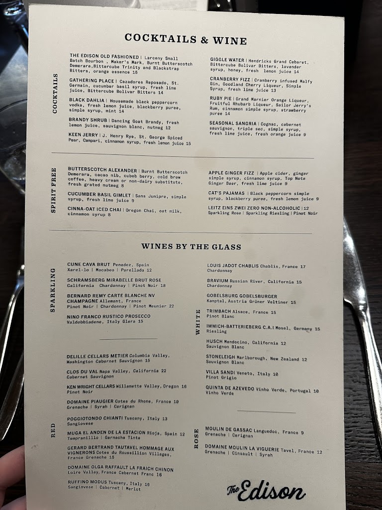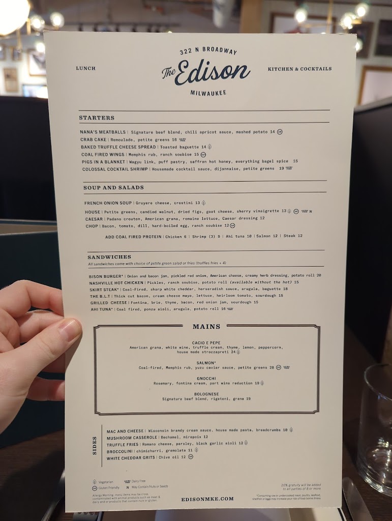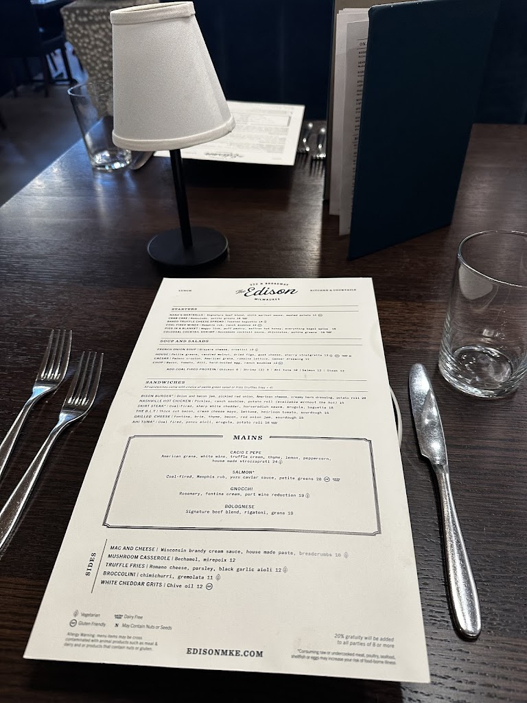 Between the excellent service, thoughtful recommendations, and a menu that delivers on flavor, Edison easily stands out among Milwaukee’s downtown dining scene. Definitely a place worth revisiting.