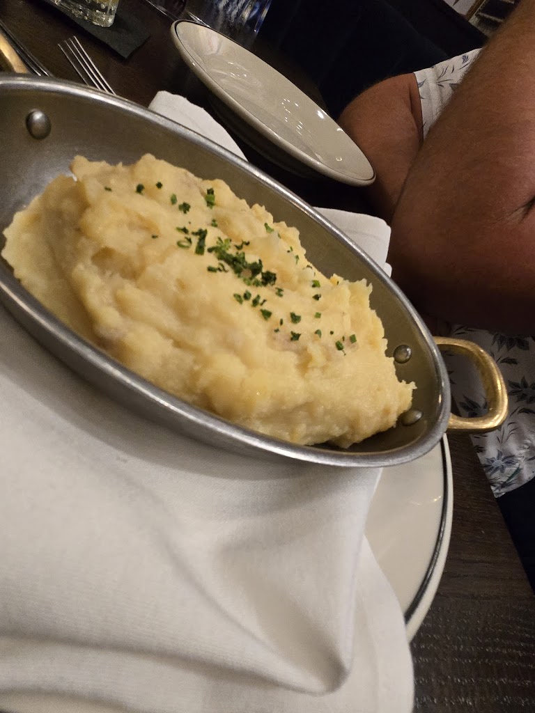 The food was fine. I guess I was expecting a lot, and it kind of fell short of expectations. The prime was a bit tough, the risotto was well prepared but just not well balanced. Flavors were a bit disjointed. The salmon was good and well cooked and flavor was good.