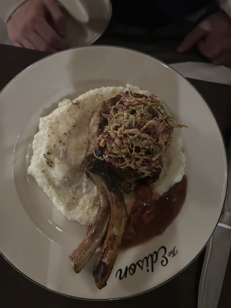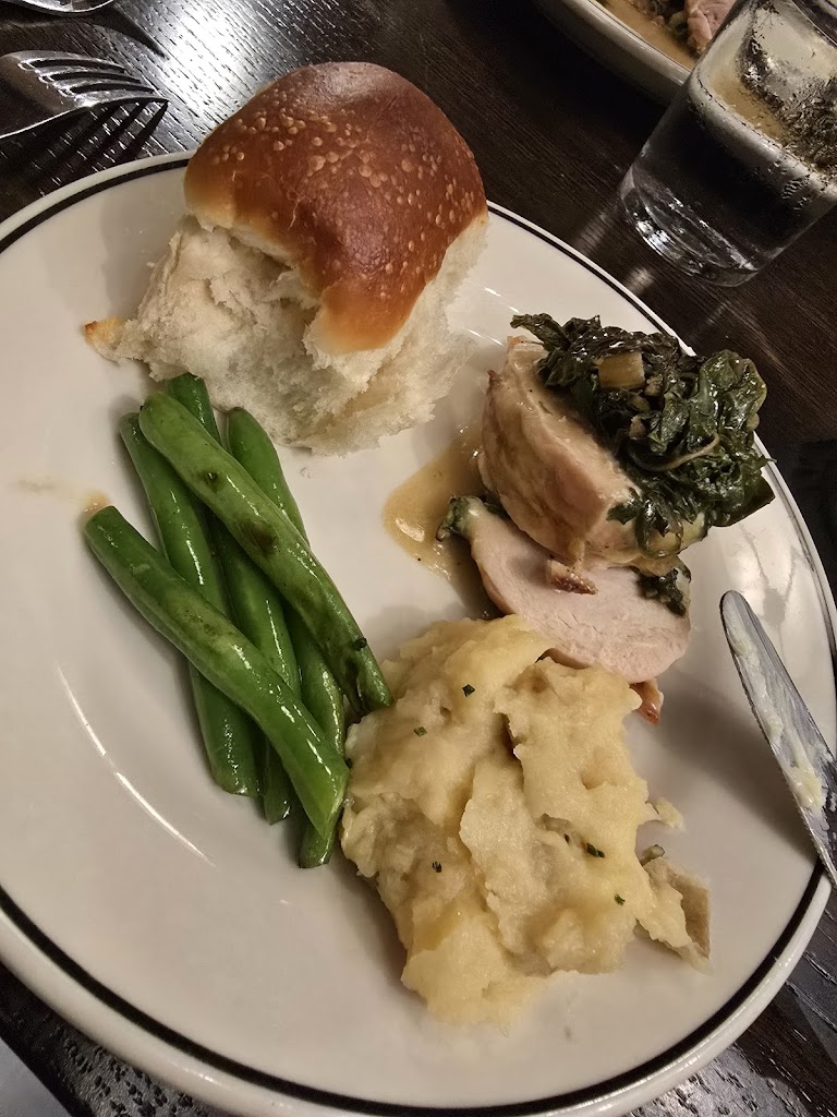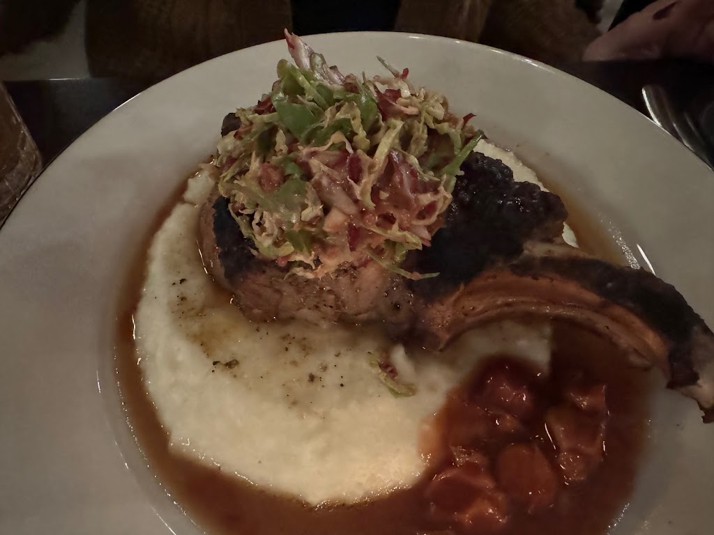Don’t usually write reviews but feel like talking about how good our dinner was last night. We had tempura shallots and wedge salad for apps - 11/10. Pork chop (9/10) as main and mushroom casserole and French onion gnocchi for sides (11/10) complimentary birthday flourless chocolate cake for dessert was perfect.