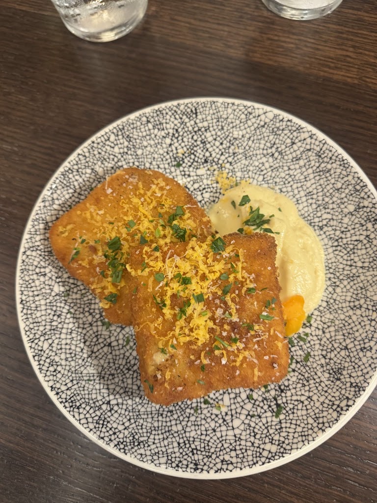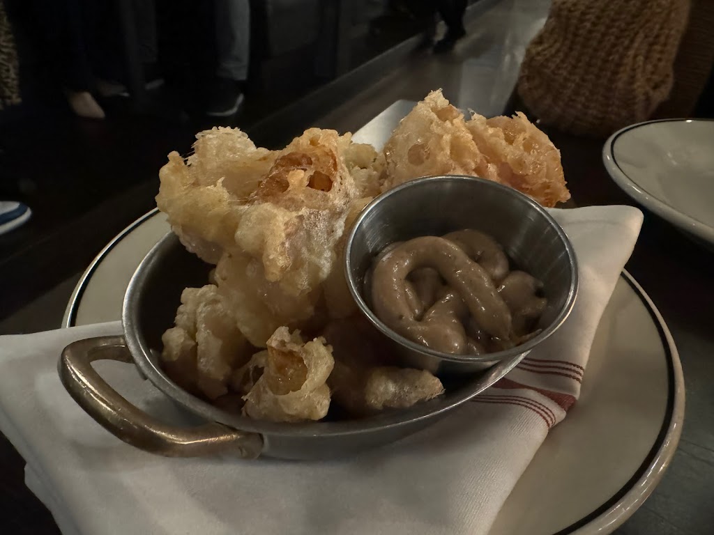 Started with Ham and Cheese Croquette. Filling was bland. Came out lukewarm. Whipped honey mustard was more Dijon than anything. Also not a croquette. Croquette means small and dainty. That was a brick. Maybe that’s why when it was fried it was lukewarm in the middle. But what the hell do I know.