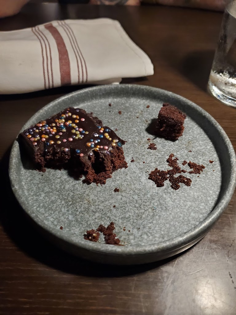 For dessert, we got the pecan custard and it was sad. Looked sad. Tasted sad. I wouldn’t eat here again. But nothing was horrible. Just way overpriced for what the food is. Mid at best
