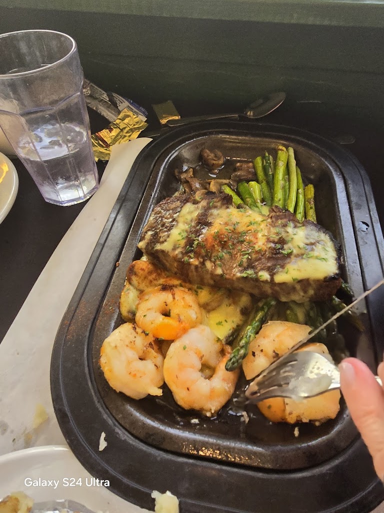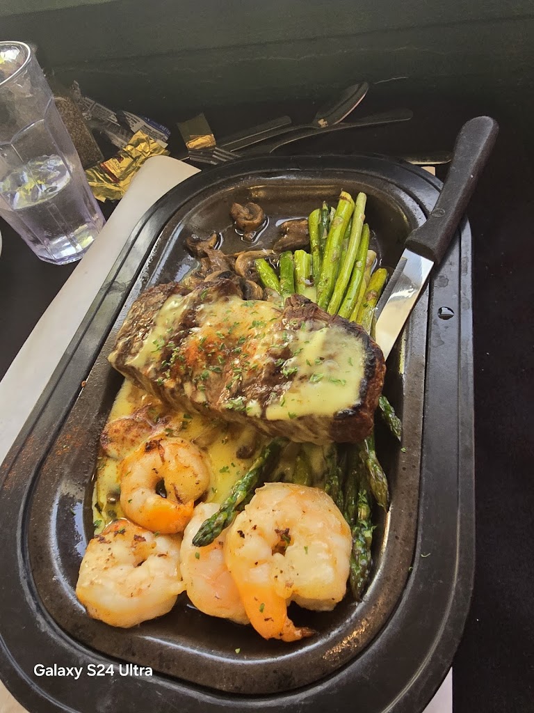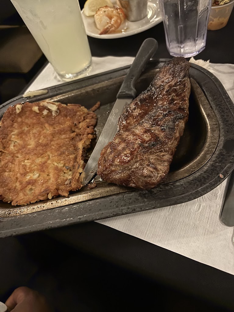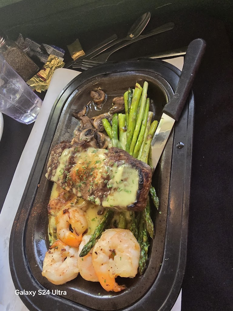 The table next to us leaned over and asked us if our food was inedible too. They said, their steak tasted frozen and the shrimp were so hard they tasted like they were chewing on shells.