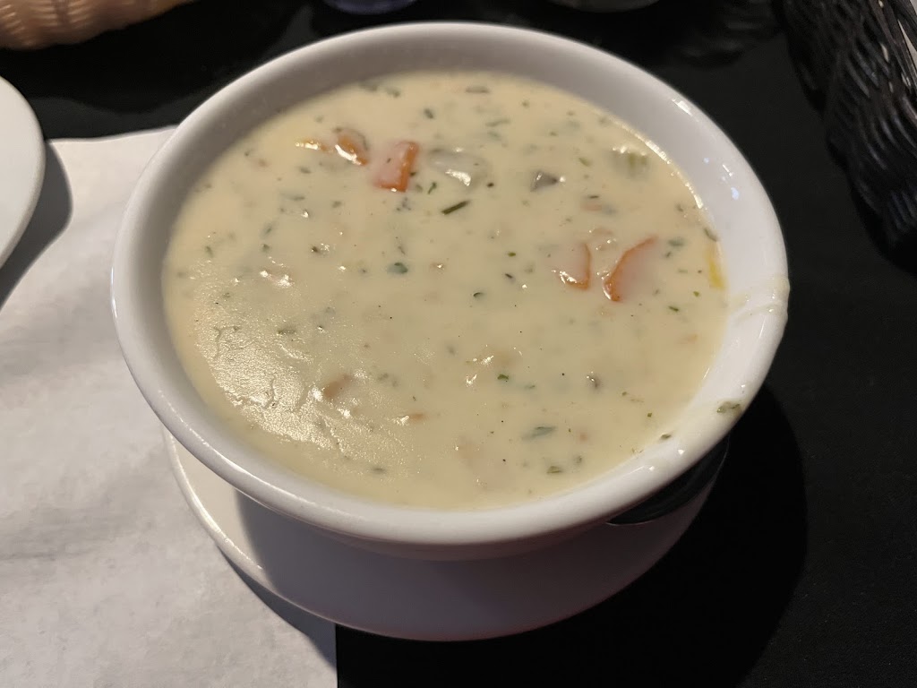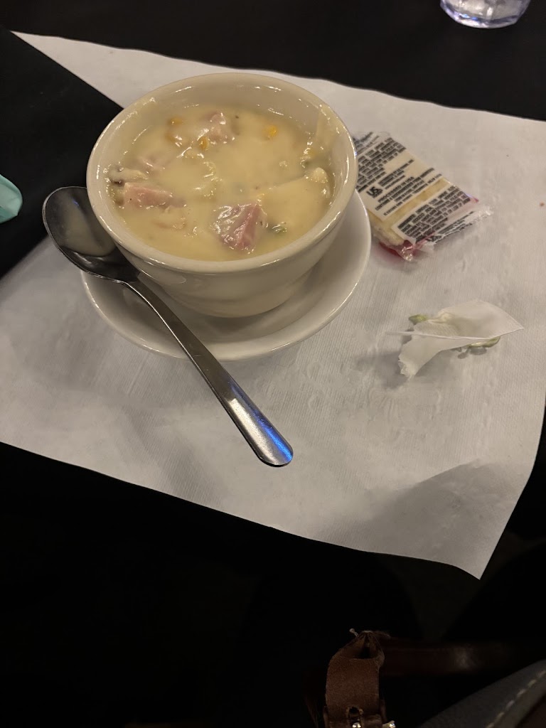 My steak was tough and a tenderloin is rarely tough. I loved the chicken noodle soup! And the baked potato was delicious.