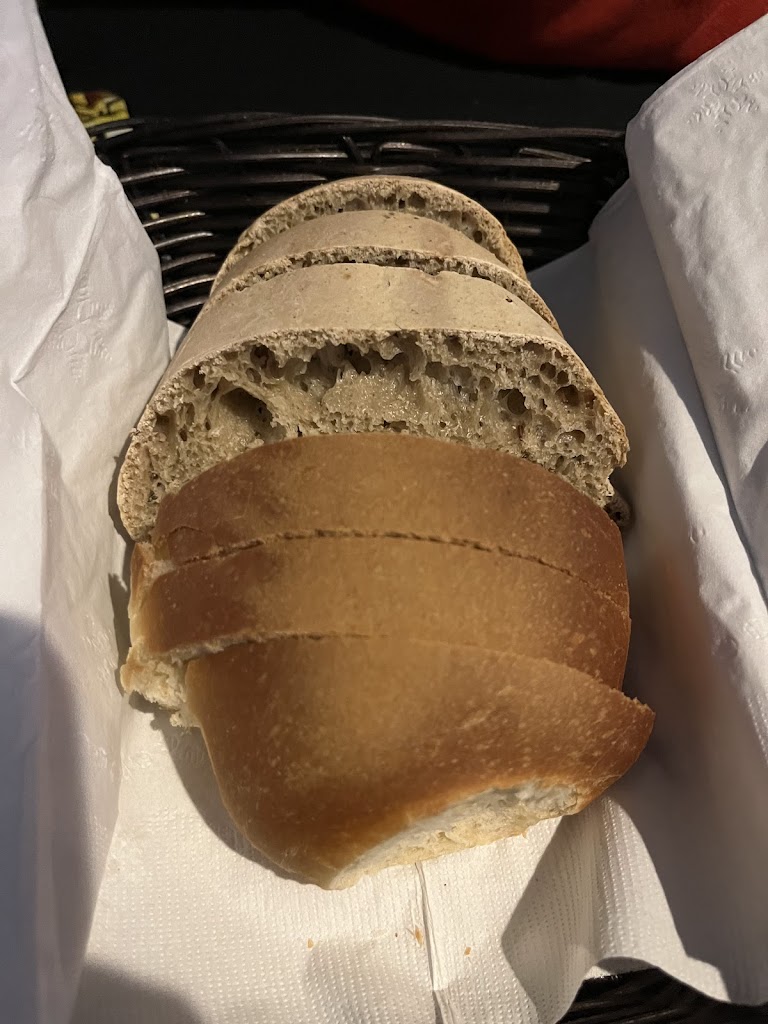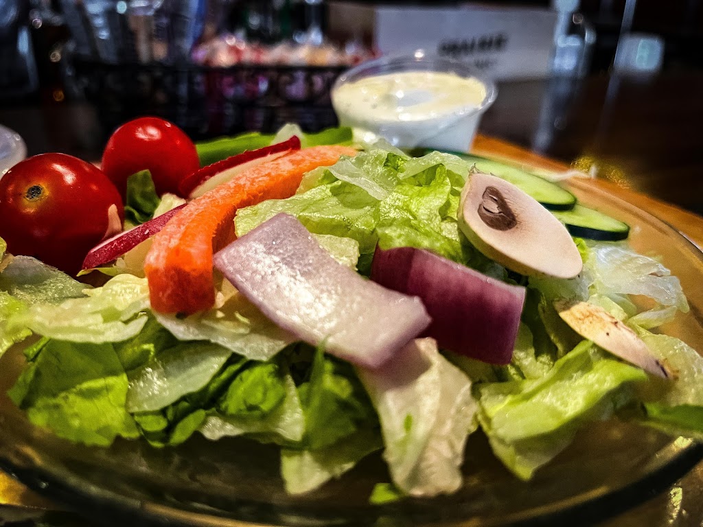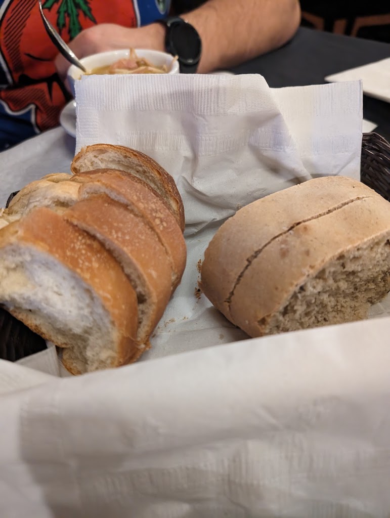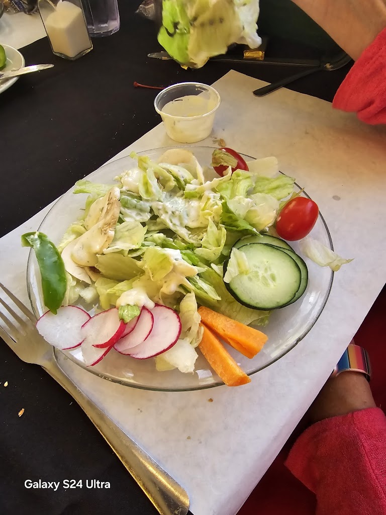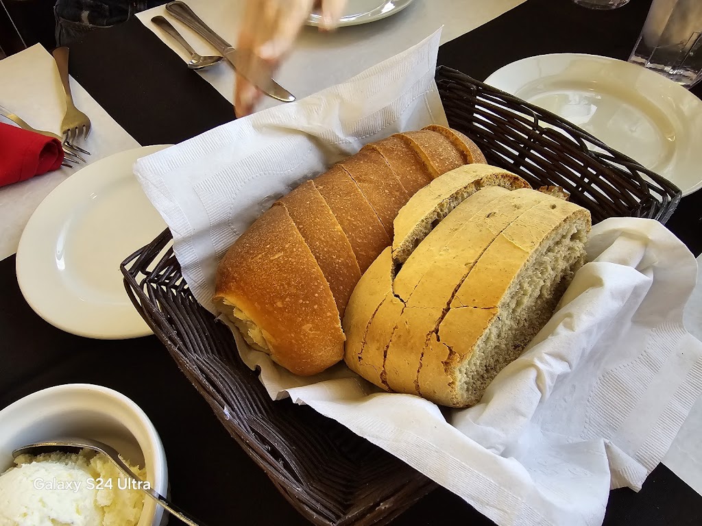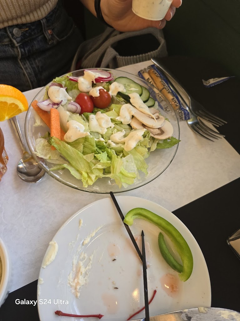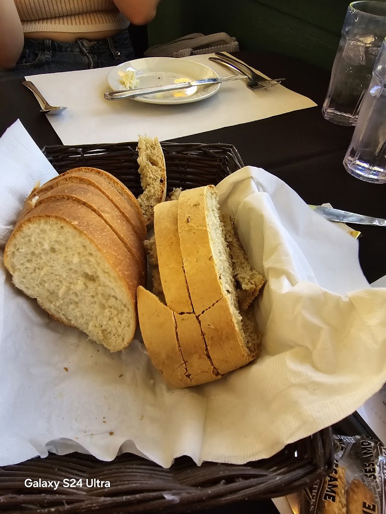 Bread was warm, cheese dip and crackers were delicious. Garden salad was just eh with ice berg lettuce, mushrooms and tomatos.