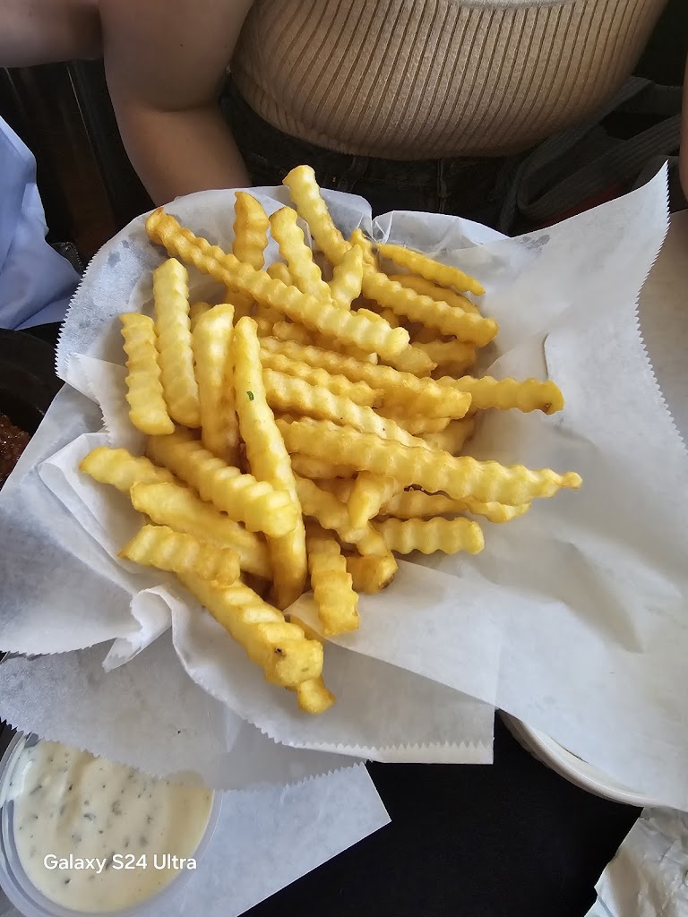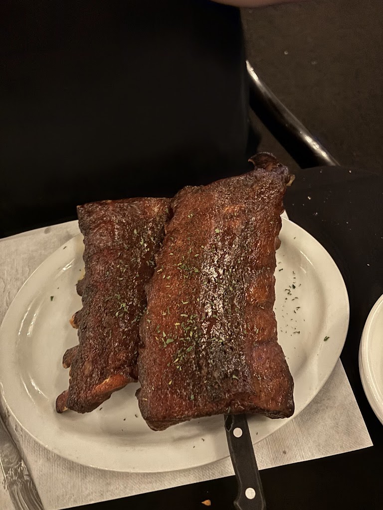 I ordered a full rack of ribs with hash browns with cheese and onions. Ribs fell off the bone and are covered in a tangy BBQ sauce. A little too much sauce for my liking. Personal choice. Hash browns were nasty. They were mushy on the inside, and had a single slice of cheese barely melted and 3 mini pieces of onion on top. What a disappointment. I was so excited for those hash browns.