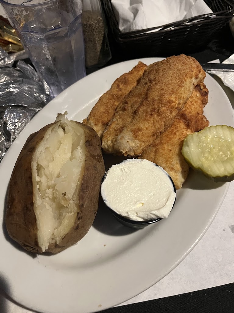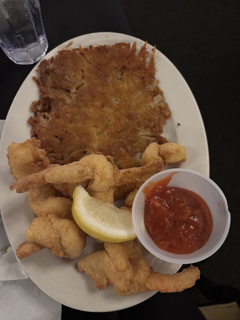 We ordered chicken wings and catfish fingers for appetizers. My friends ordered Steak with hash brown, ribs with a baked potato. I ordered deep fried ocean Perch with clam chowder, deep fried shrimp with hash brown. Everything was Awful I am never going back.